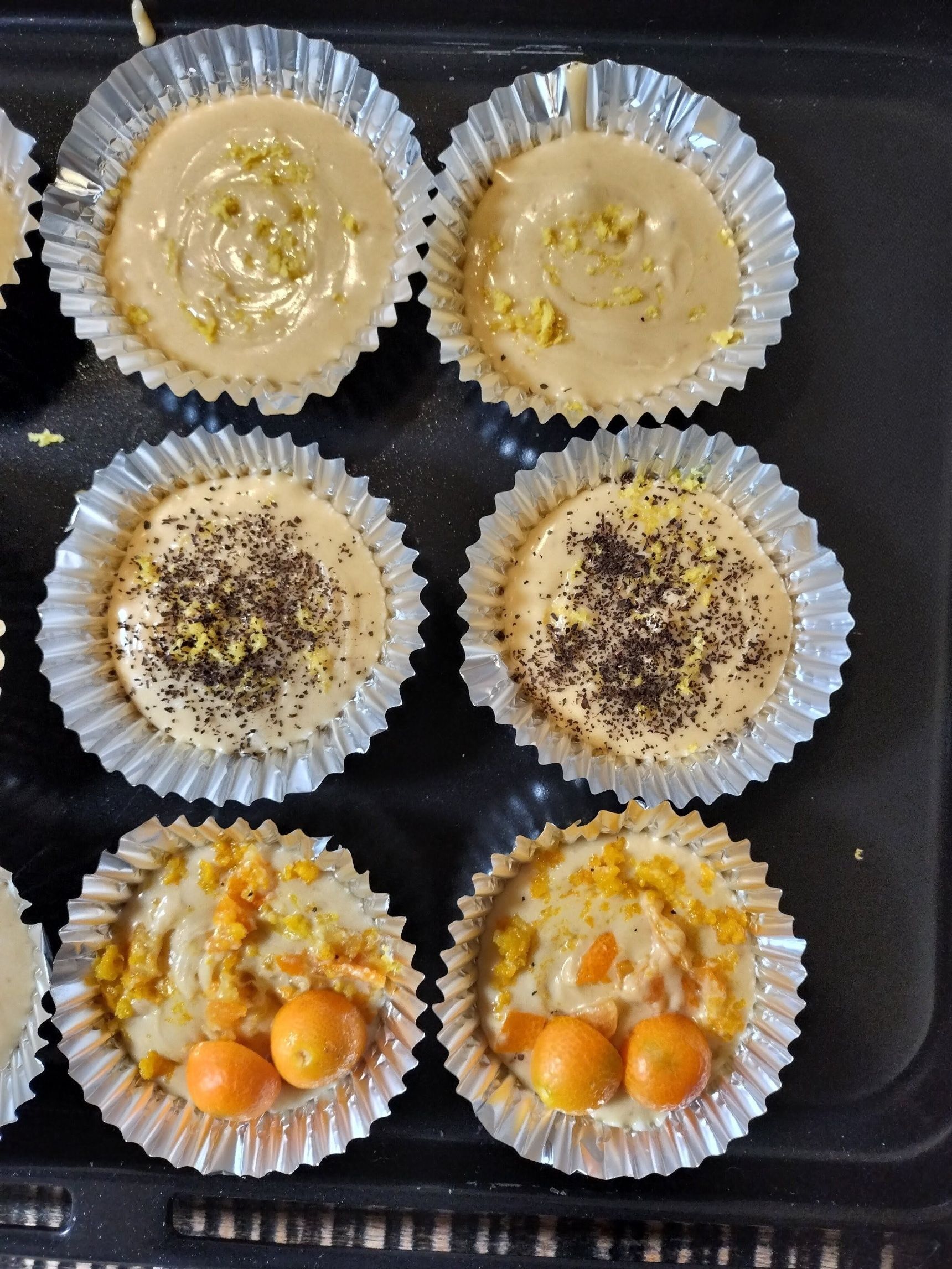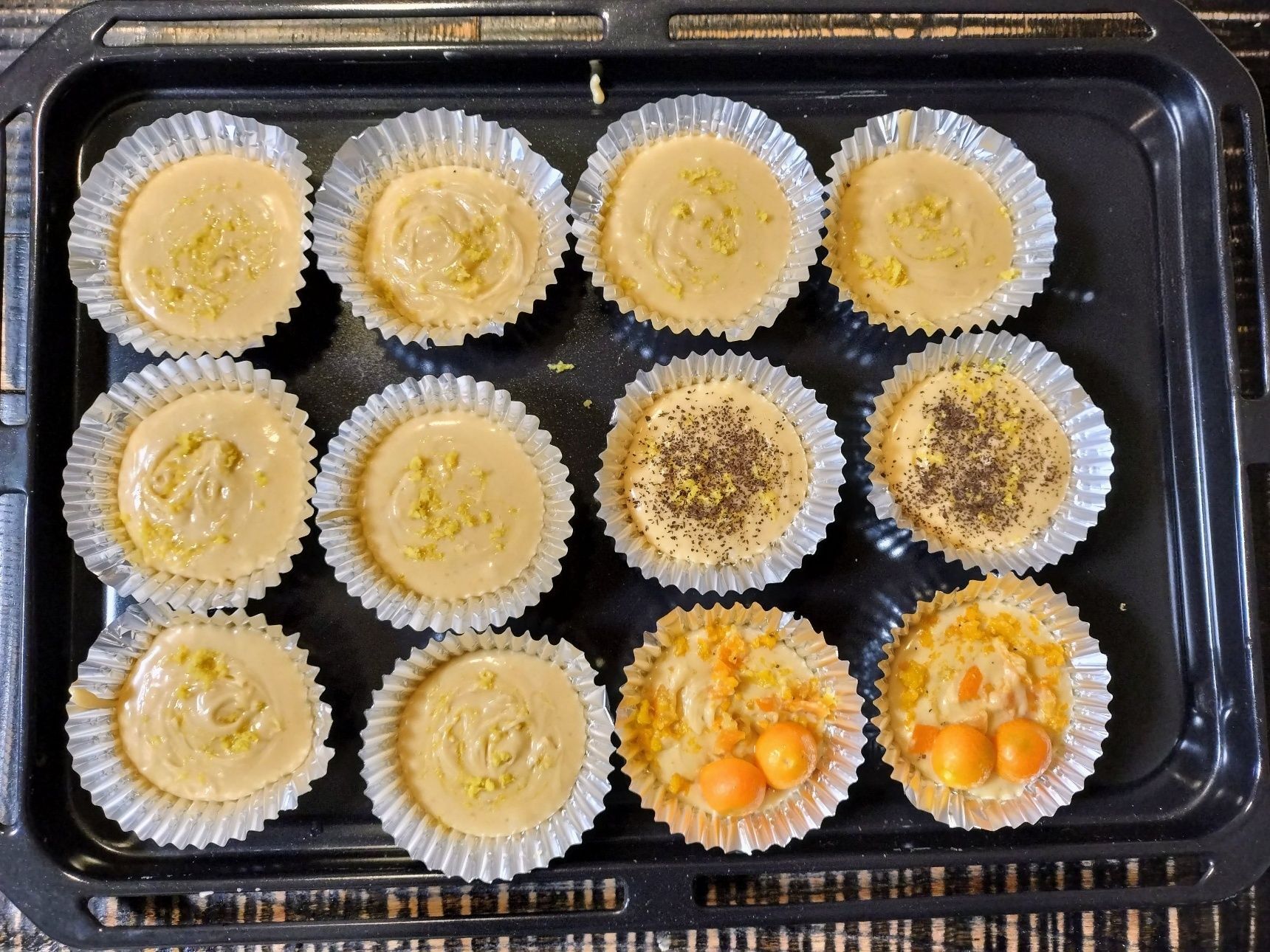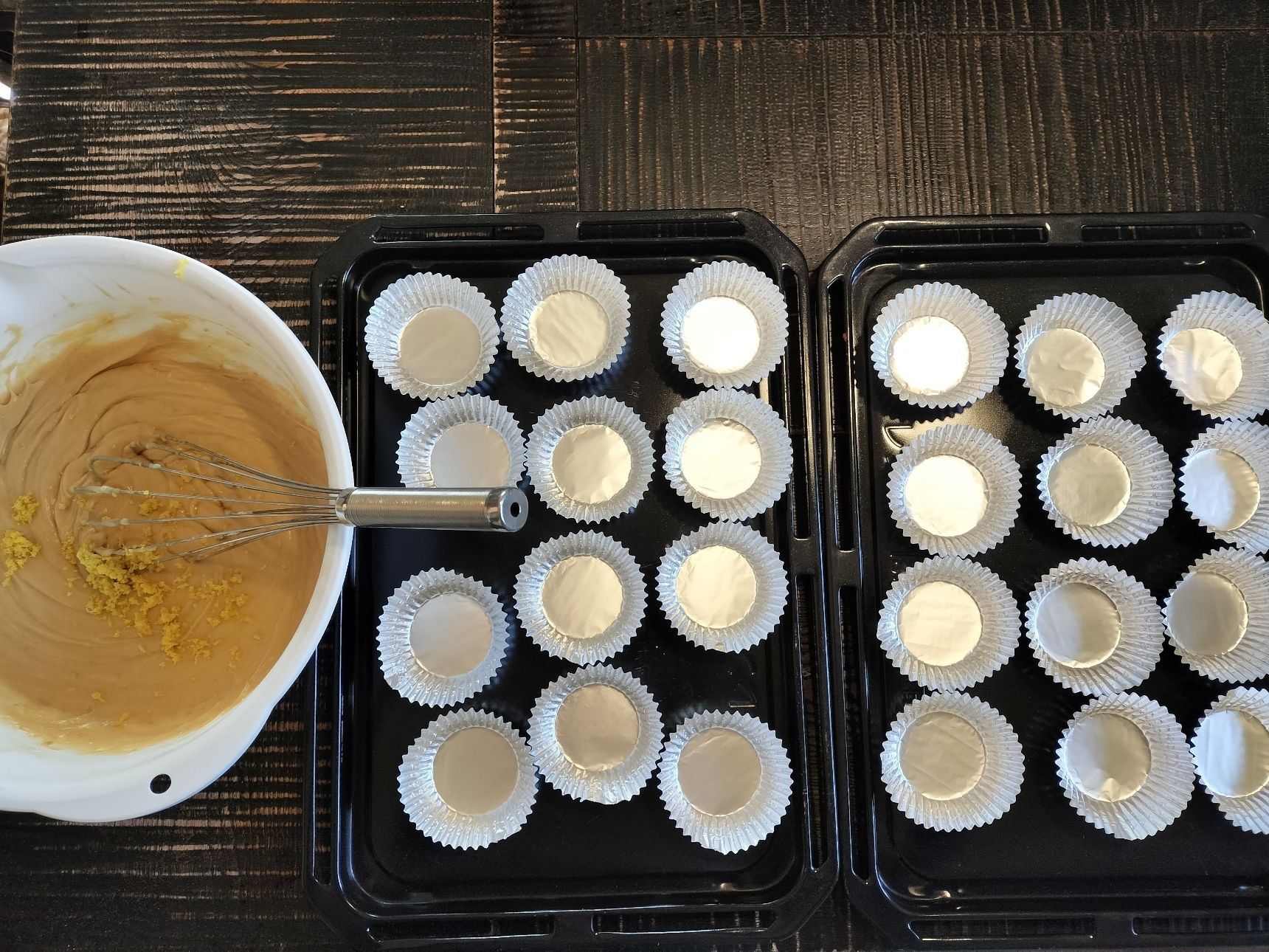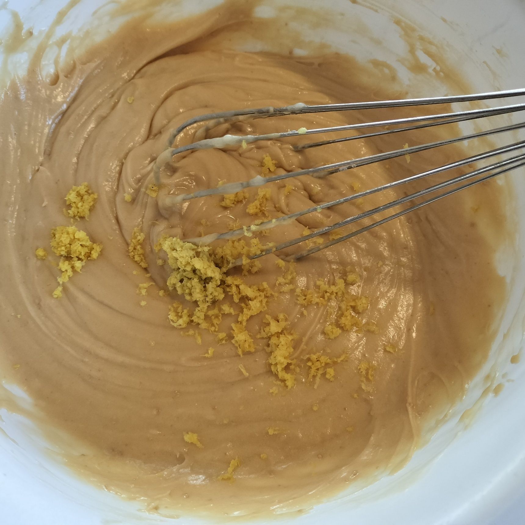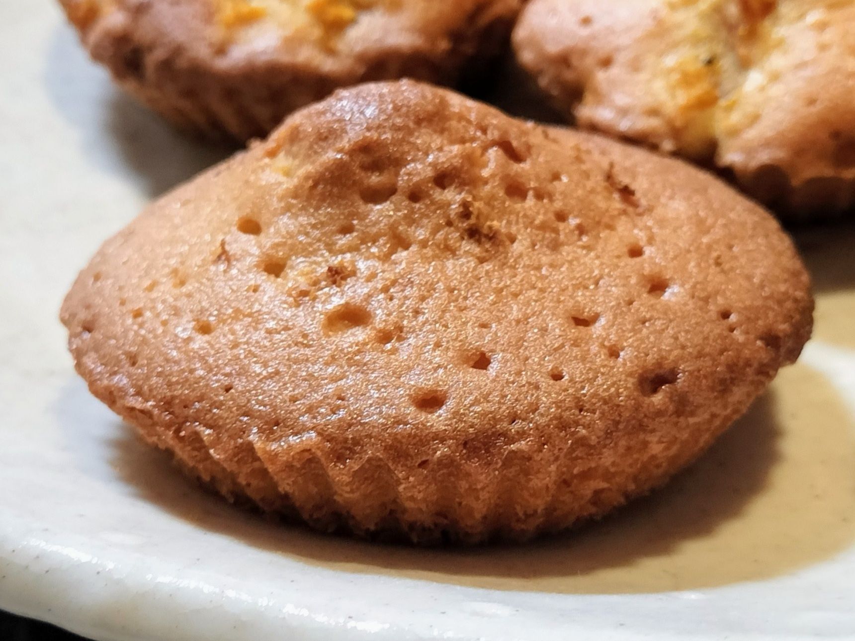 ※レモンマドレーヌだけの場合は、直接生地にすりおろしたレモンの皮を加えて、混ぜてから、アルミカップに入れる