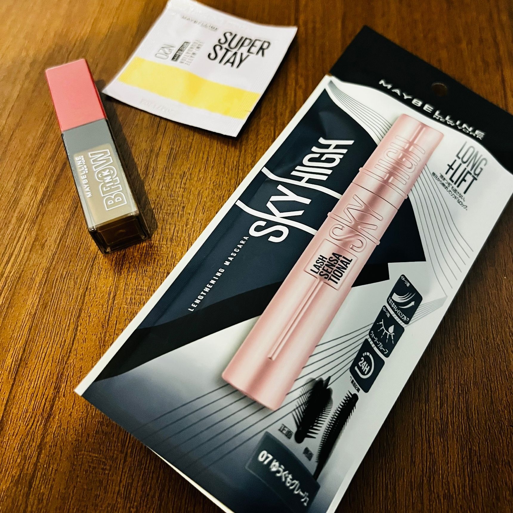 メイベリンの3点セット。真ん中のファンデーションは試供品サイズですが、マスカラと眉マスカラは現品です!