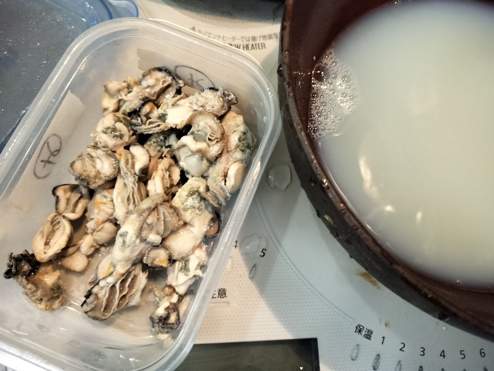 ※この白い濁り汁は、旨味成分(コハク酸)がたっぷり含まれている証拠