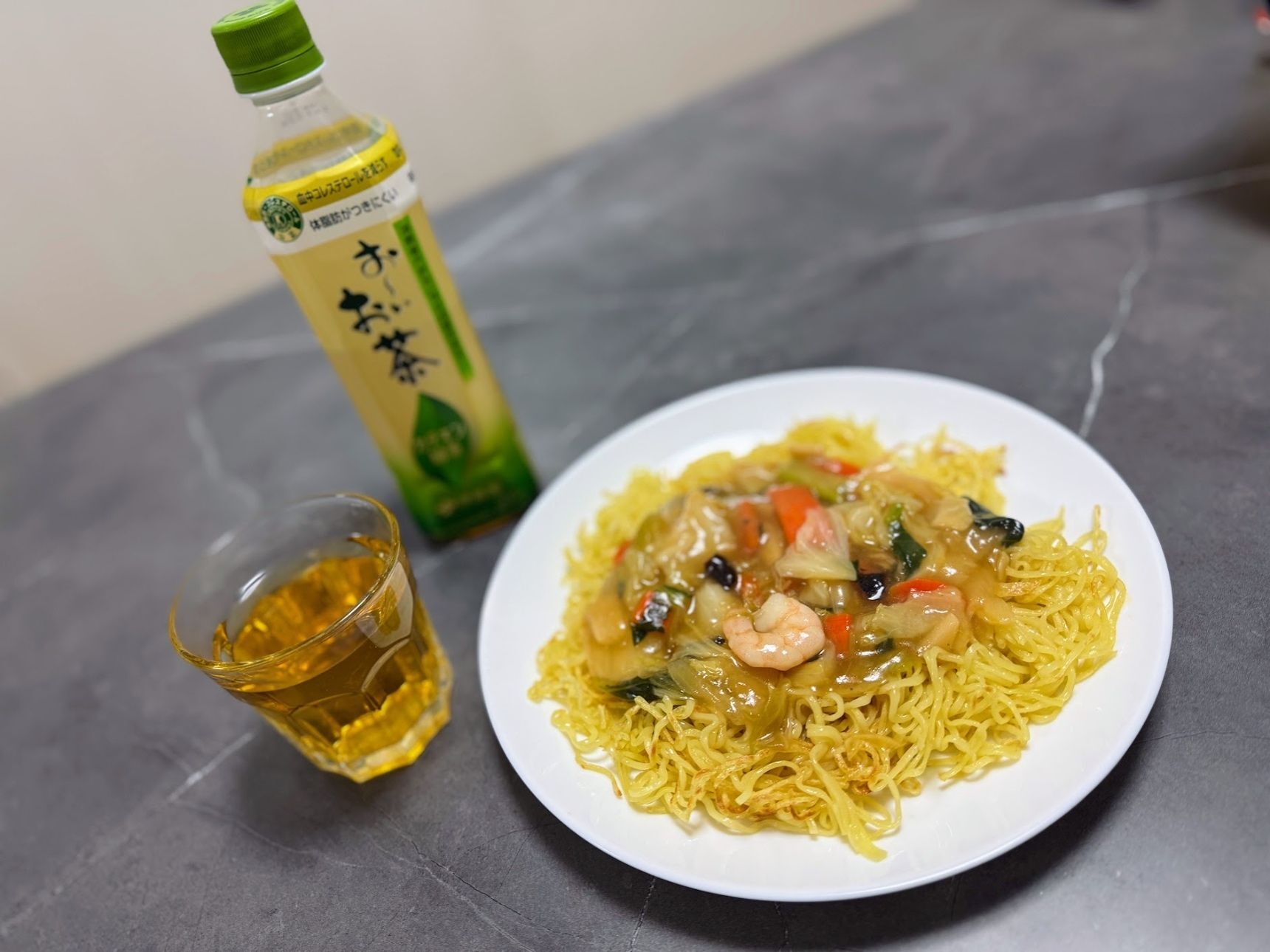特に海鮮あんかけとカテキン緑茶の相性が良く、食事の邪魔をしない組み合わせでした。