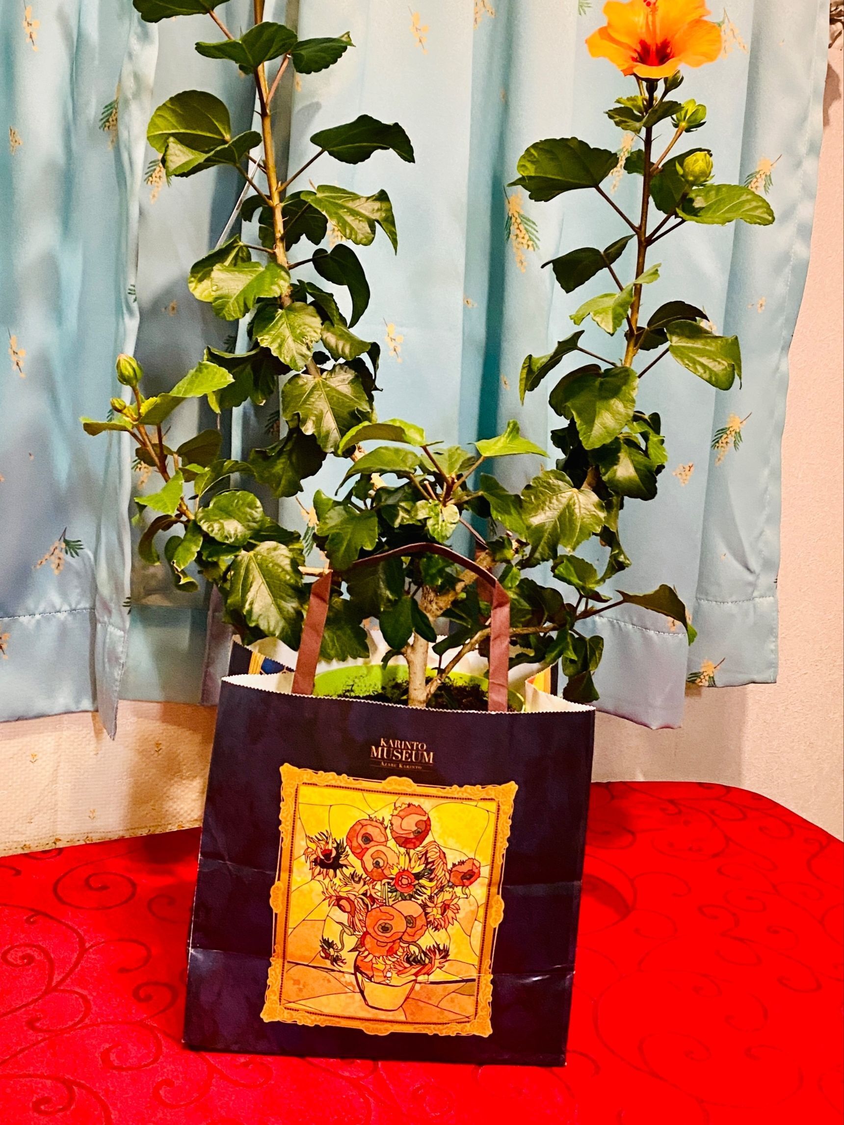 なかなか気に入った大きな鉢が見つからないもので、新しいものに交換する前に紙袋を使っておしゃれにカバーをしてみたいと思います。