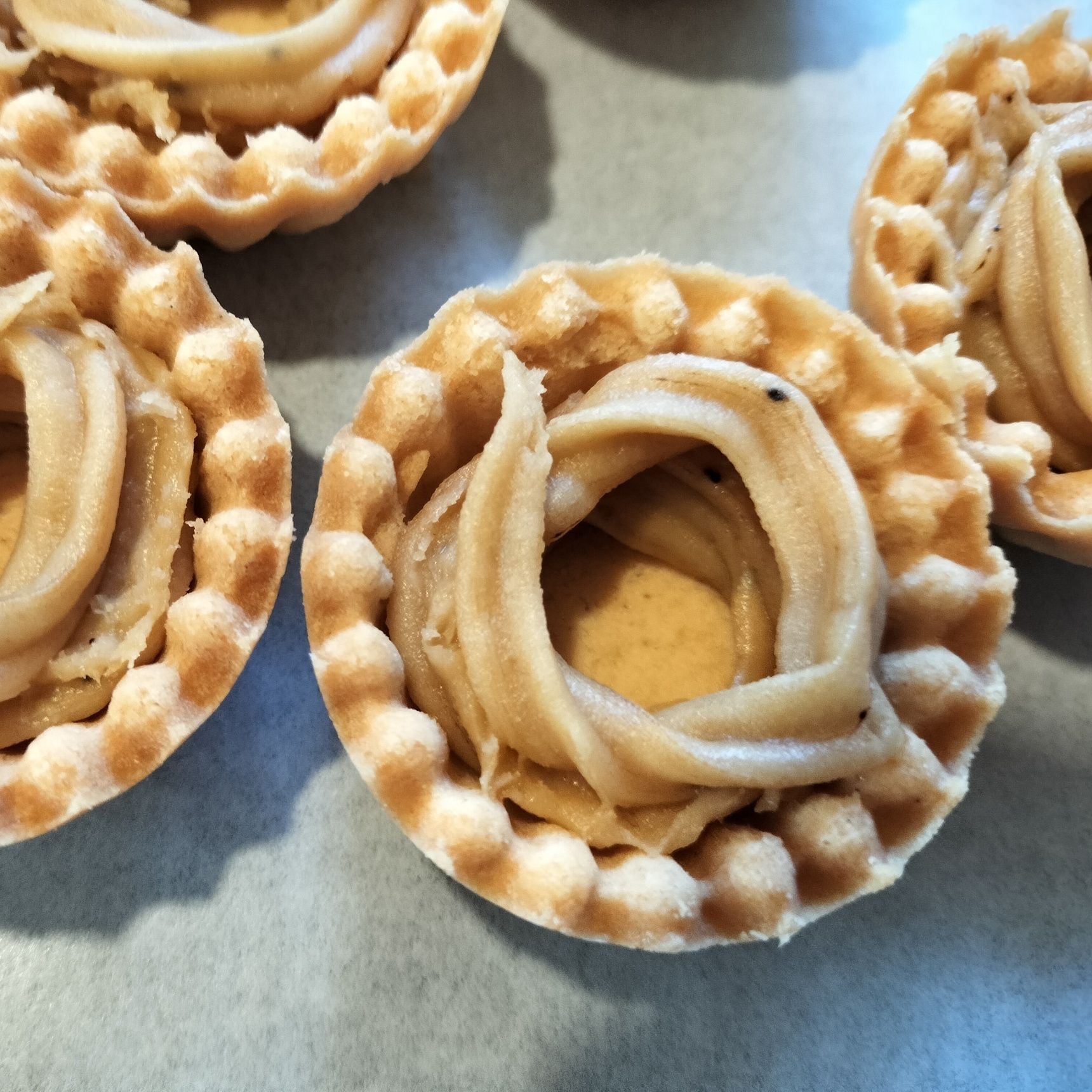 (絞ったクッキー生地の中の黒い小さな粒は、インスタントコーヒーの粉末です)