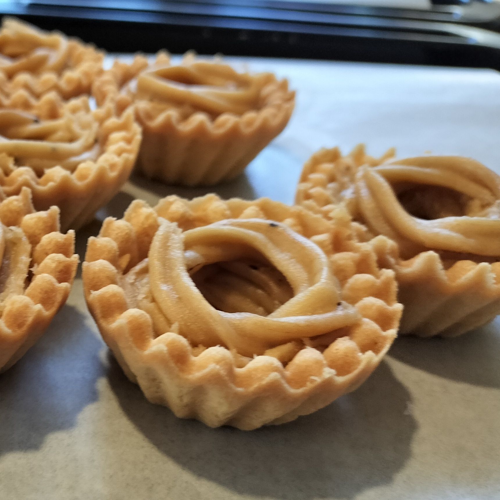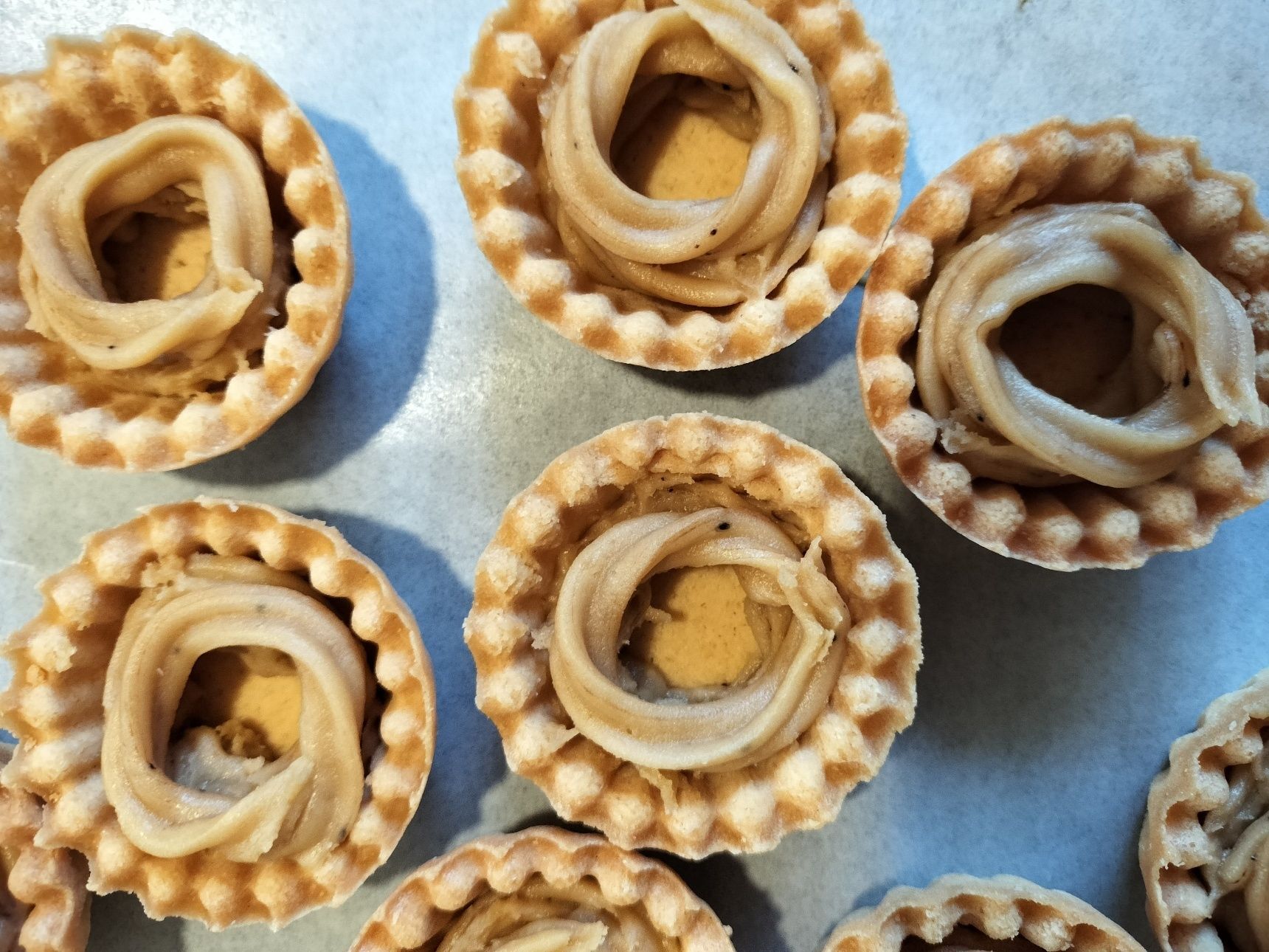 ※ロシアケーキの基本的な作り方の最初の作業をせずに、市販の焼いてあるプチタルト(クッキータイプ)を使います!