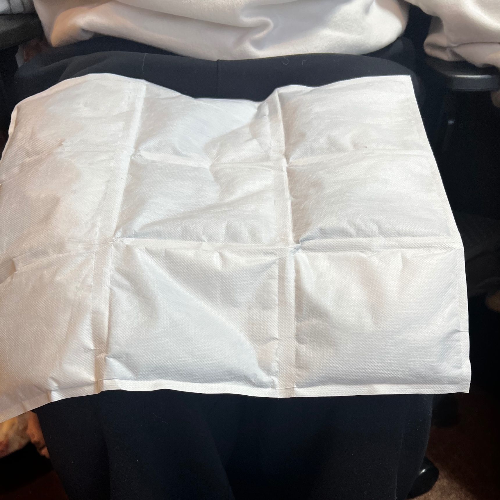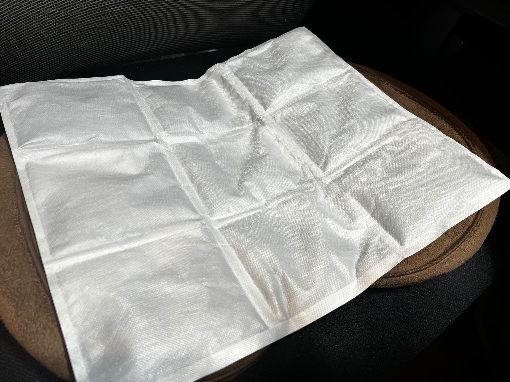 お尻の下に敷いてみました。ほどよい暖かさで、まるでよもぎ蒸しのよう。