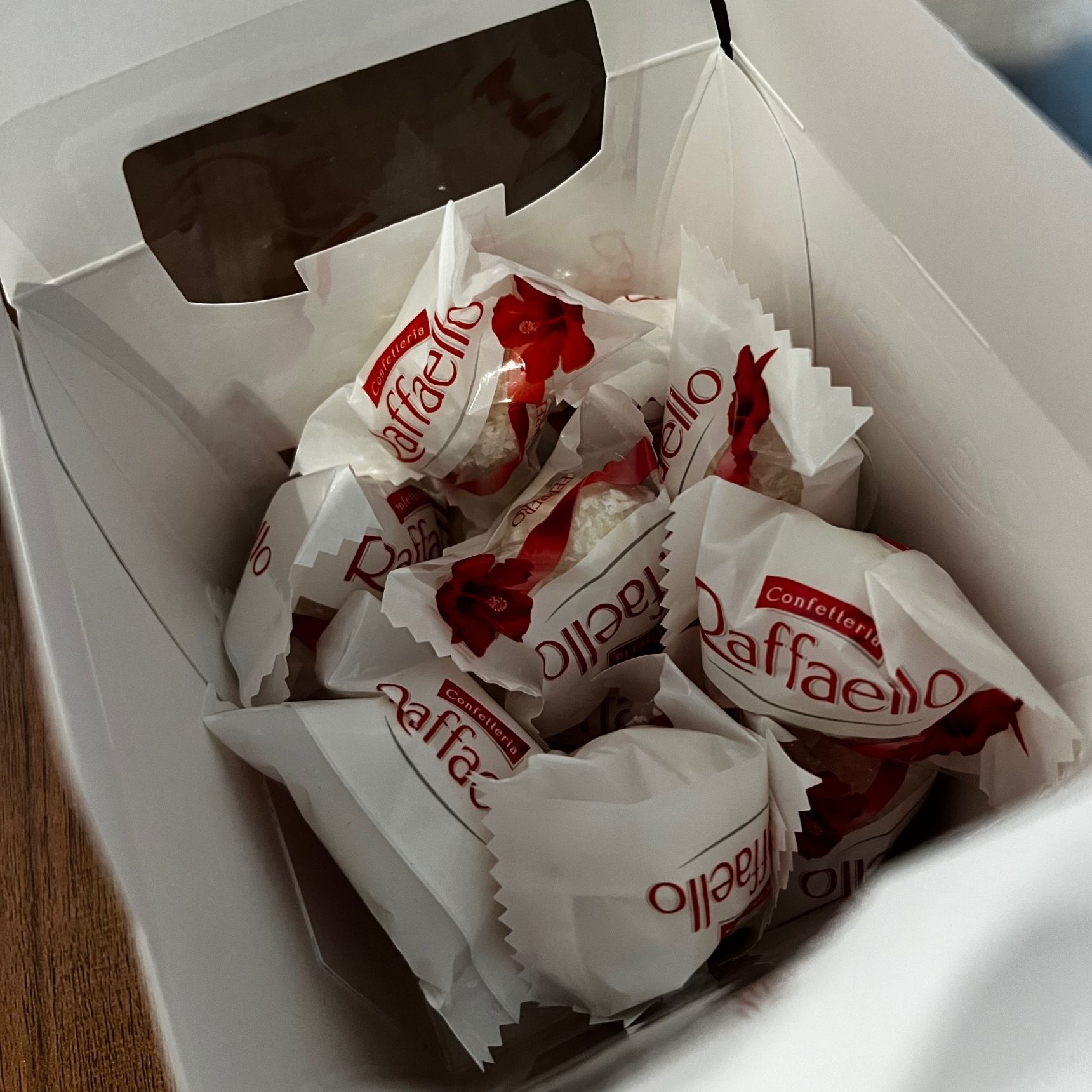 上手く割れず分かりにくいですが、1番外側がココナッツとホワイトチョコレートのコーティング。中にはクリーミーなホワイトチョコレートとウエハース。中央にはナッツも入ってます。