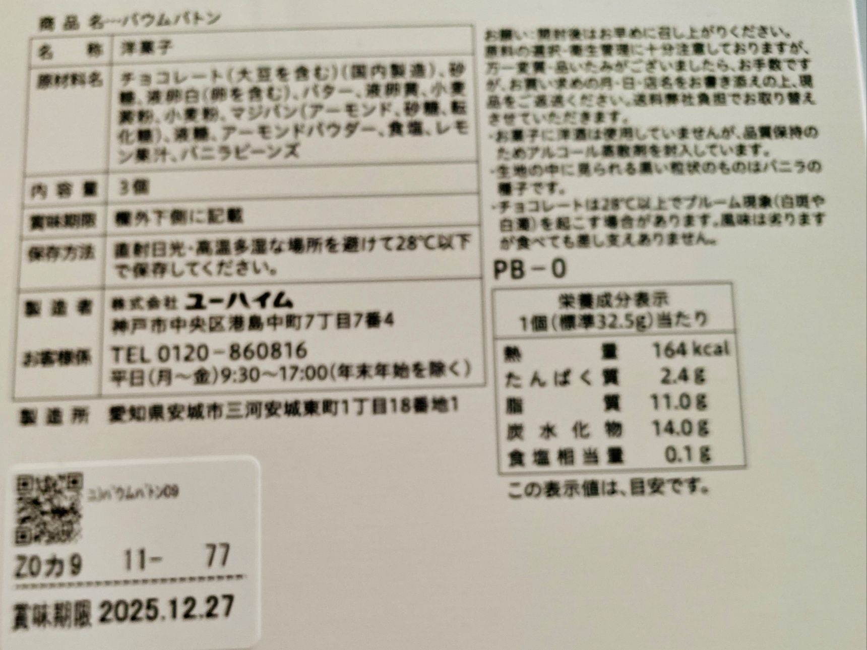赤いリボンをかけたバウムバトンは期間限定商品です。お店の方におすすめられて購入しました。どれも無添加のお菓子と言っていました。