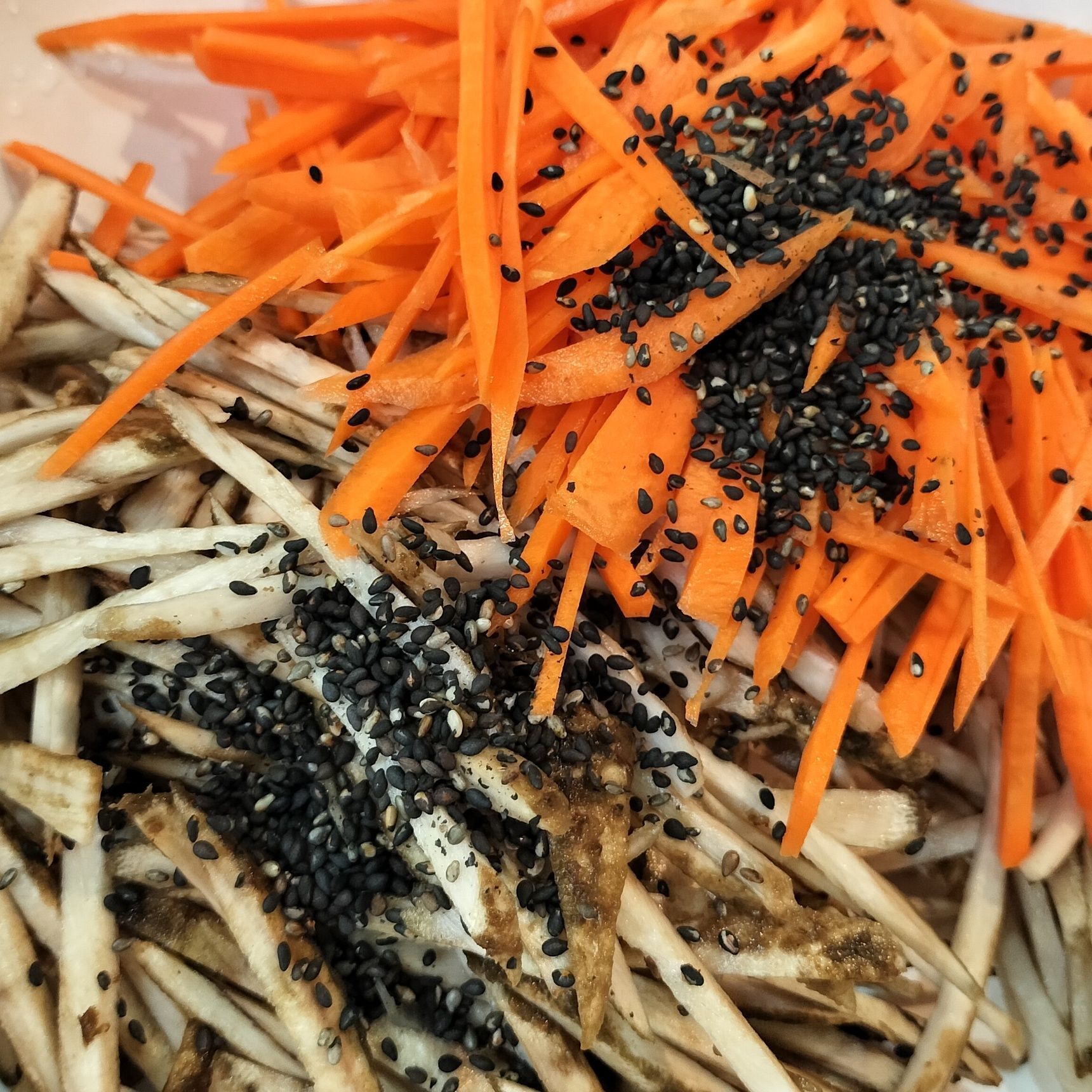 ごぼう・人参・ごま・七味唐辛子・天つゆ(醤油、砂糖等)が相まって、きんぴら風の味わいになります!