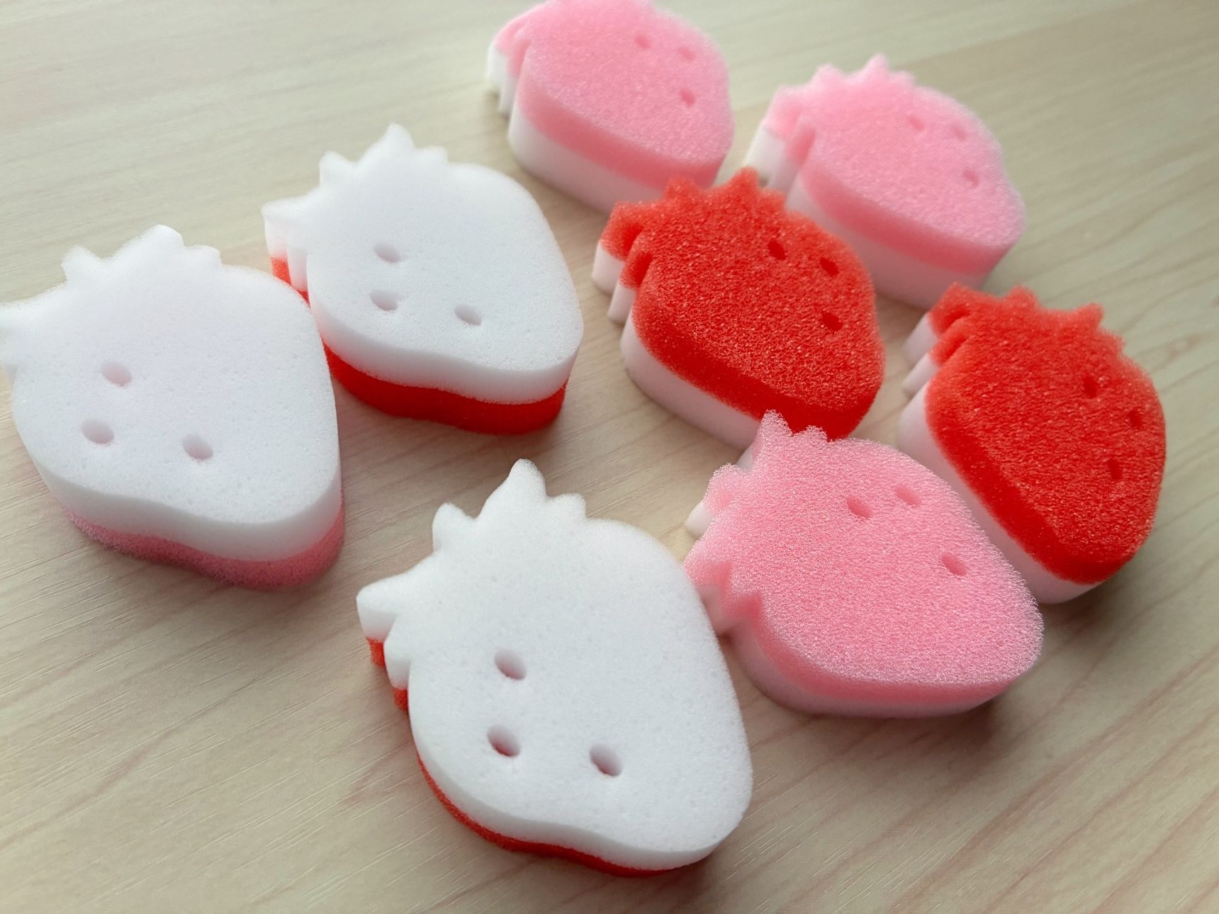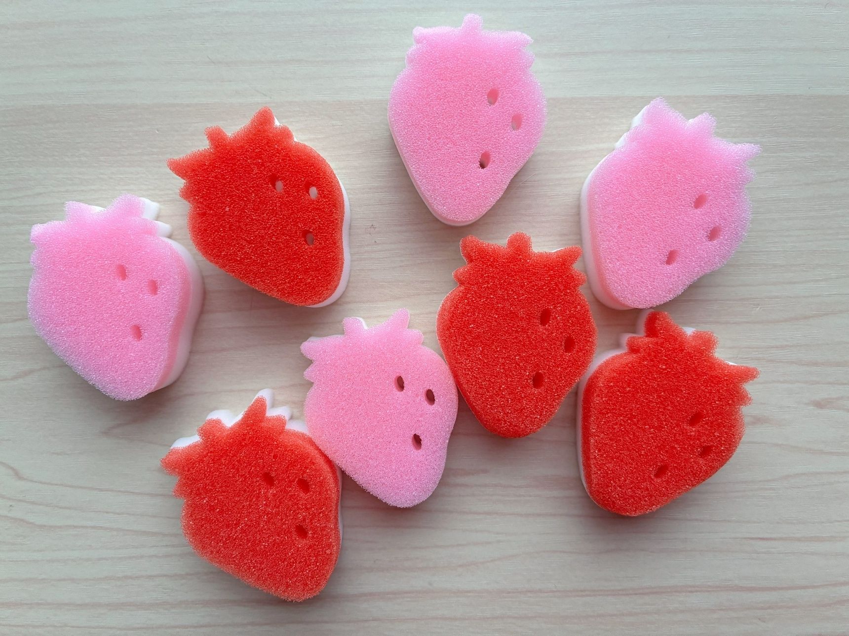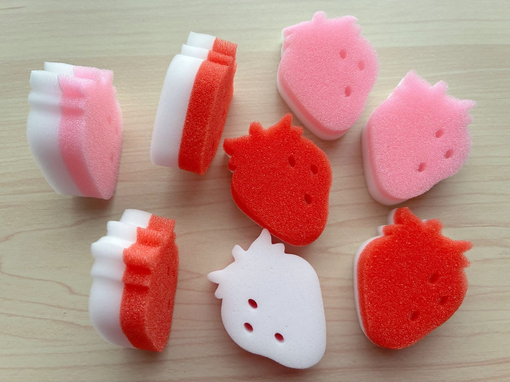 ピンクと赤の8個入りで、こちらの面はきめ細かいポリウレタンのスポンジです。