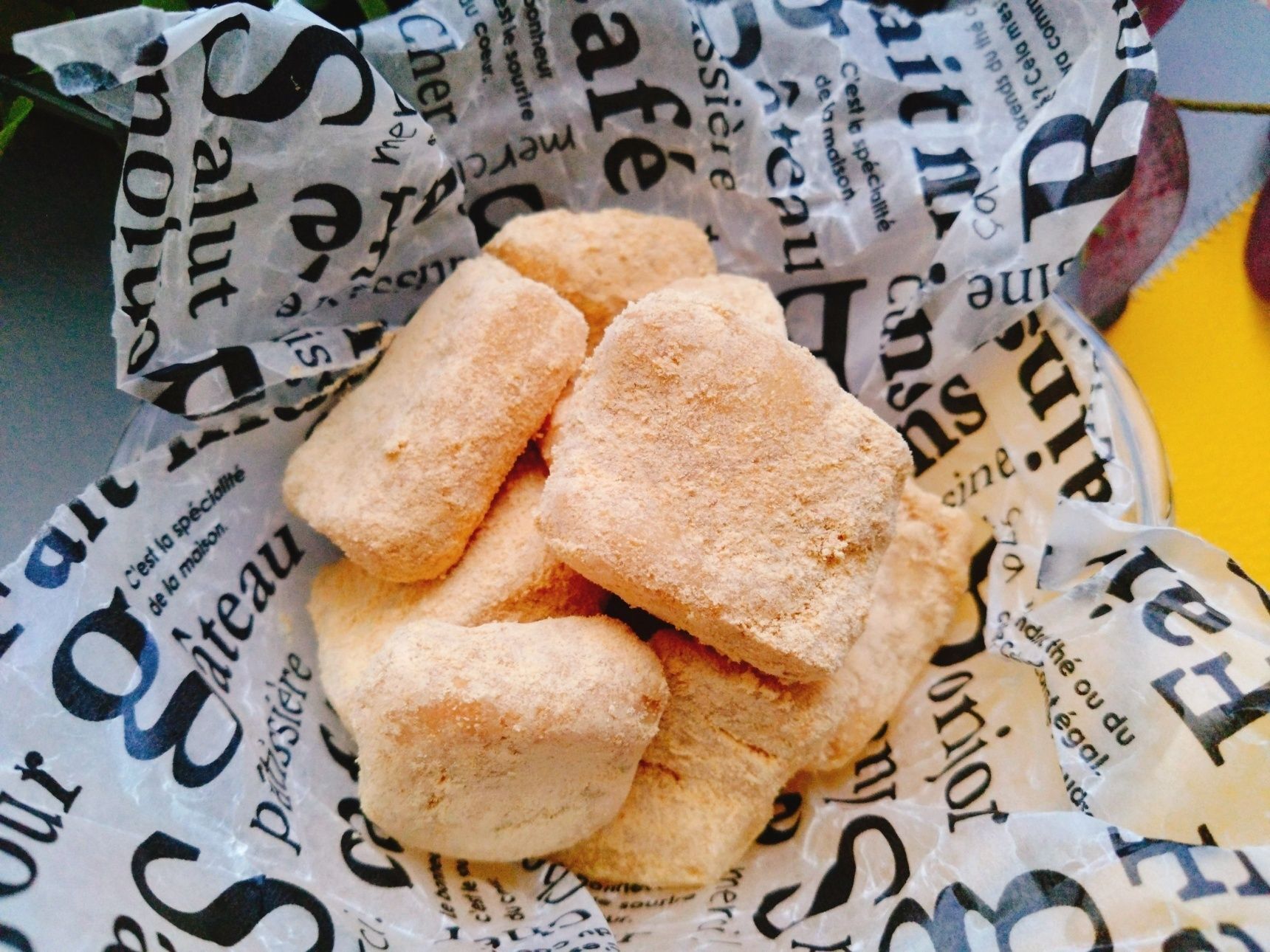2.きなこ30gを加えて粉けがなくなるまでヘラでよく混ぜる