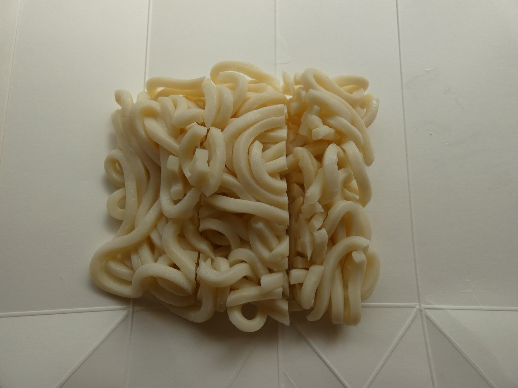 うどんと粉類を混ぜるときはポリ袋を使うと、全体にまんべんなく混ざります。
