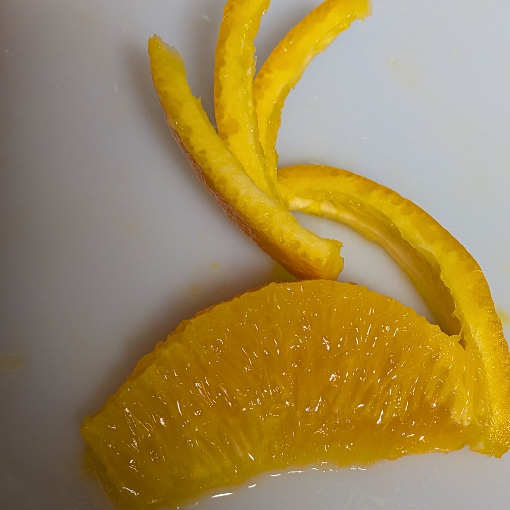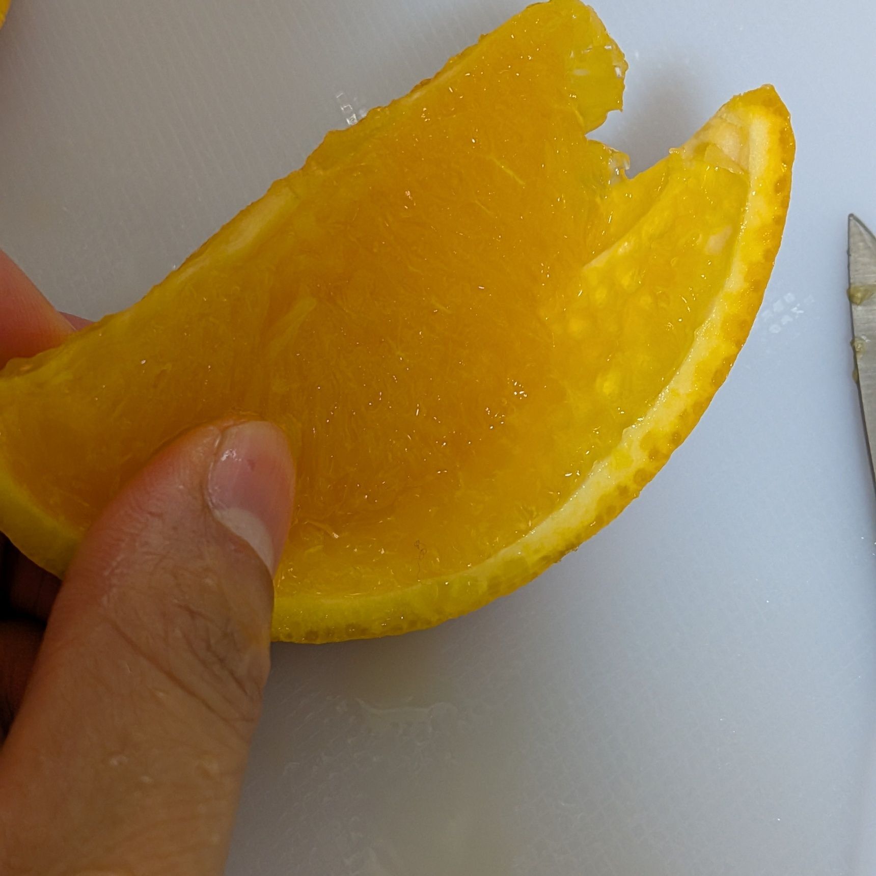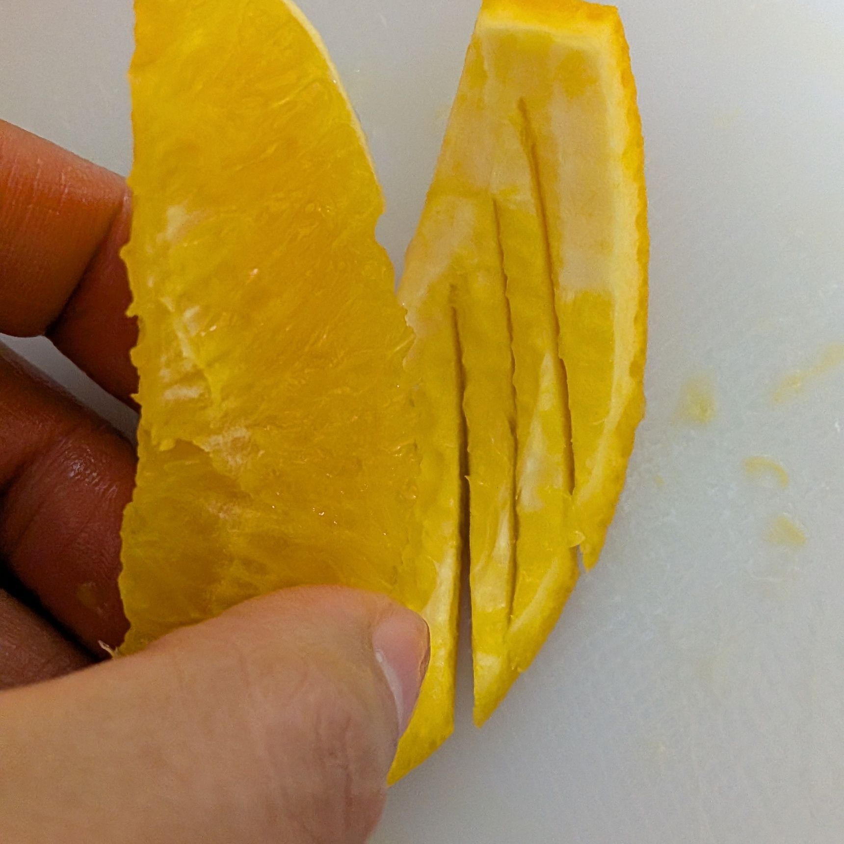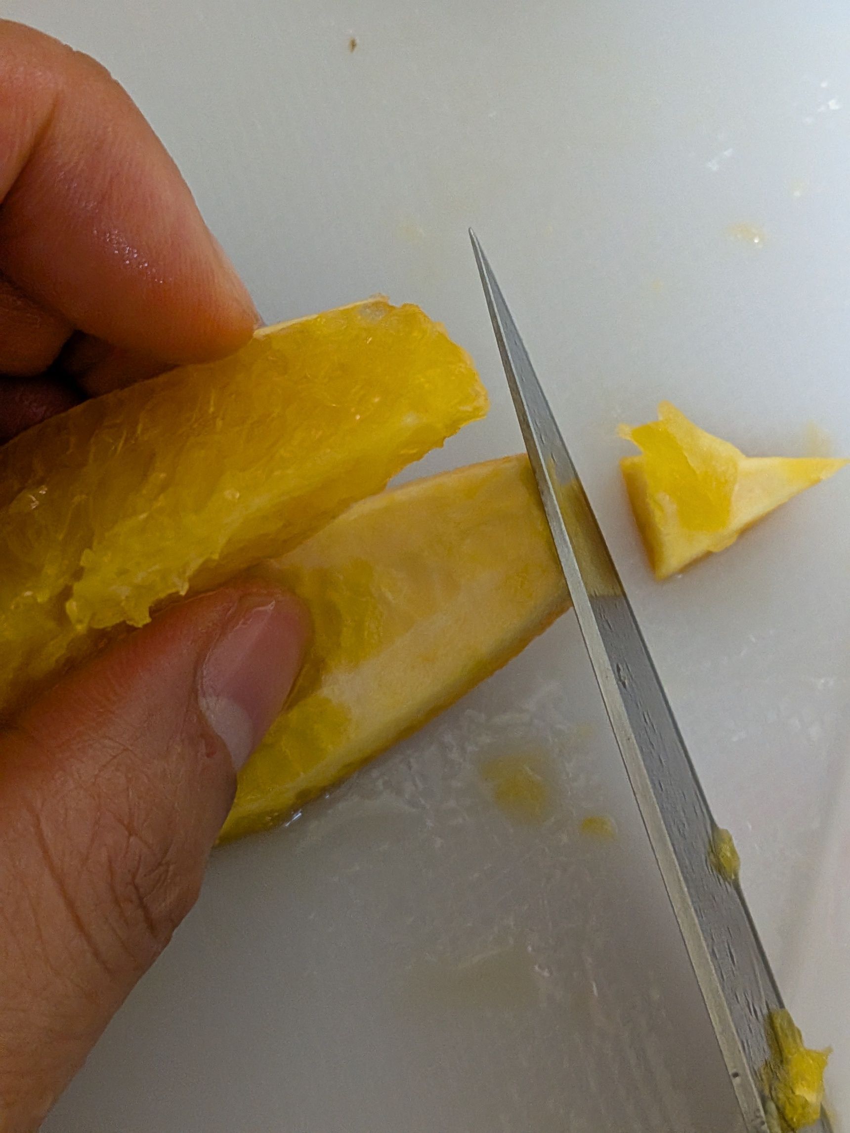 *1/8等分にくし切りにする。写真の白い部分を切り落とす。