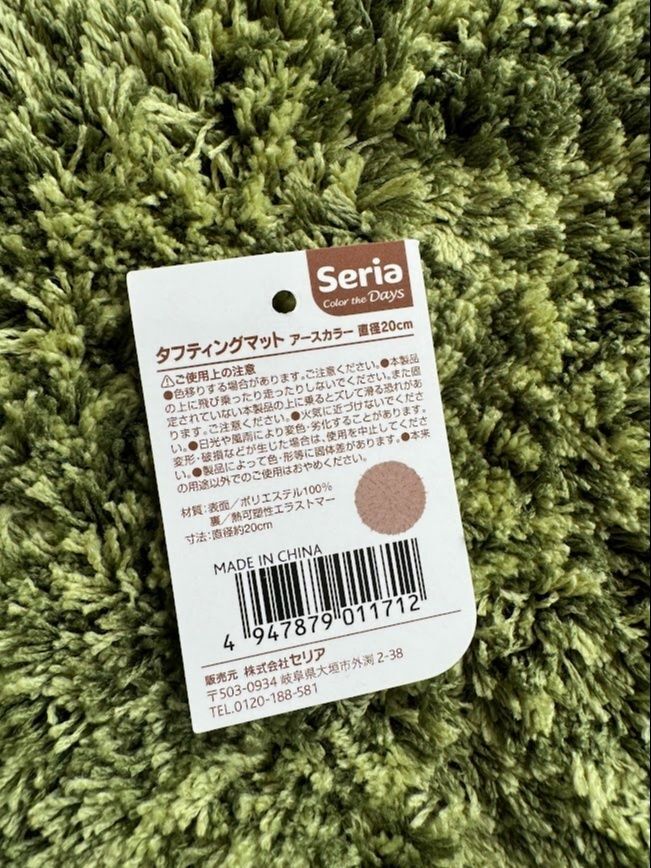 セリアのタフティングマットのアースカラー20㎝は、100円には見えない高級感があります。肌触りも良いです。