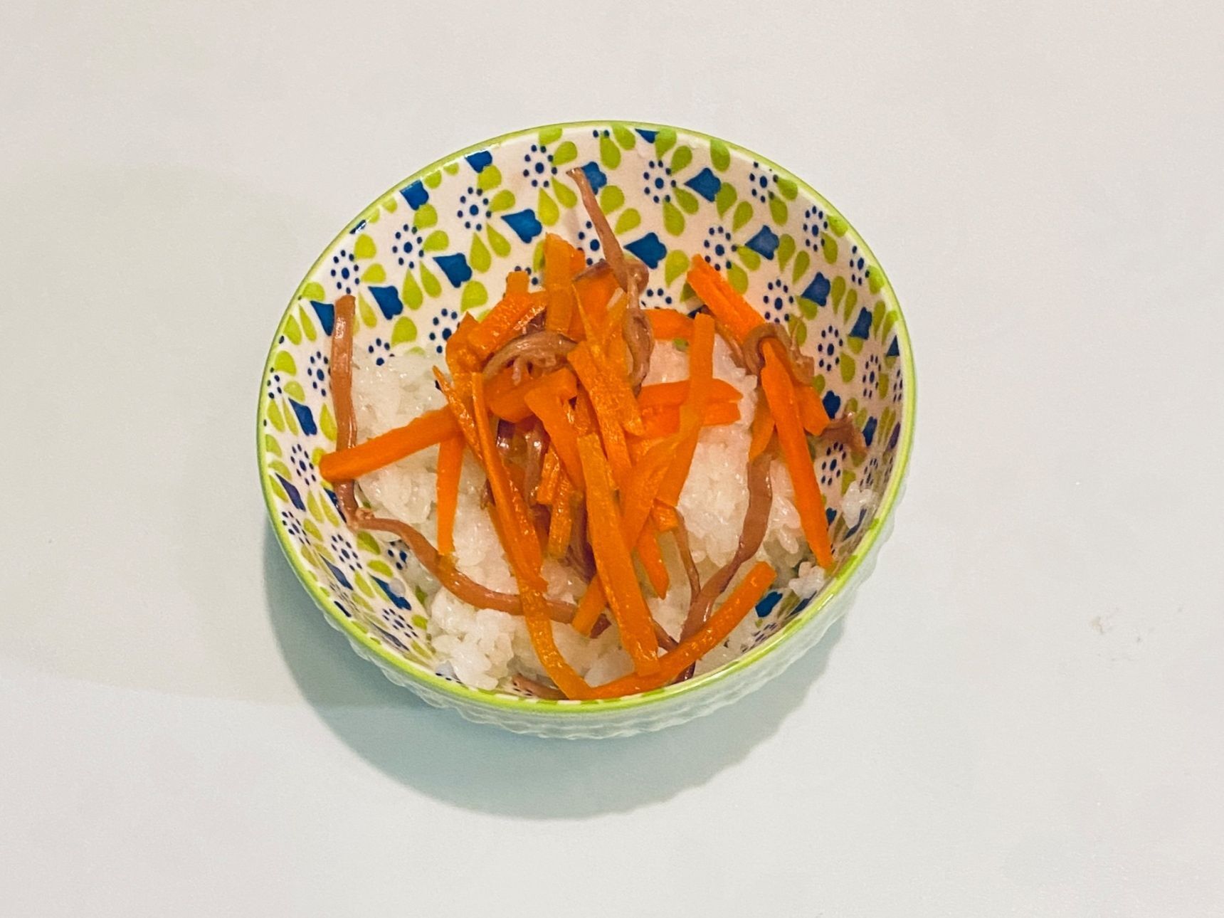 さっそく白いご飯にかけてみました。 旨味が効いていて美味しい〜 ぜひ「いか人参」福島土産にオススメです。
