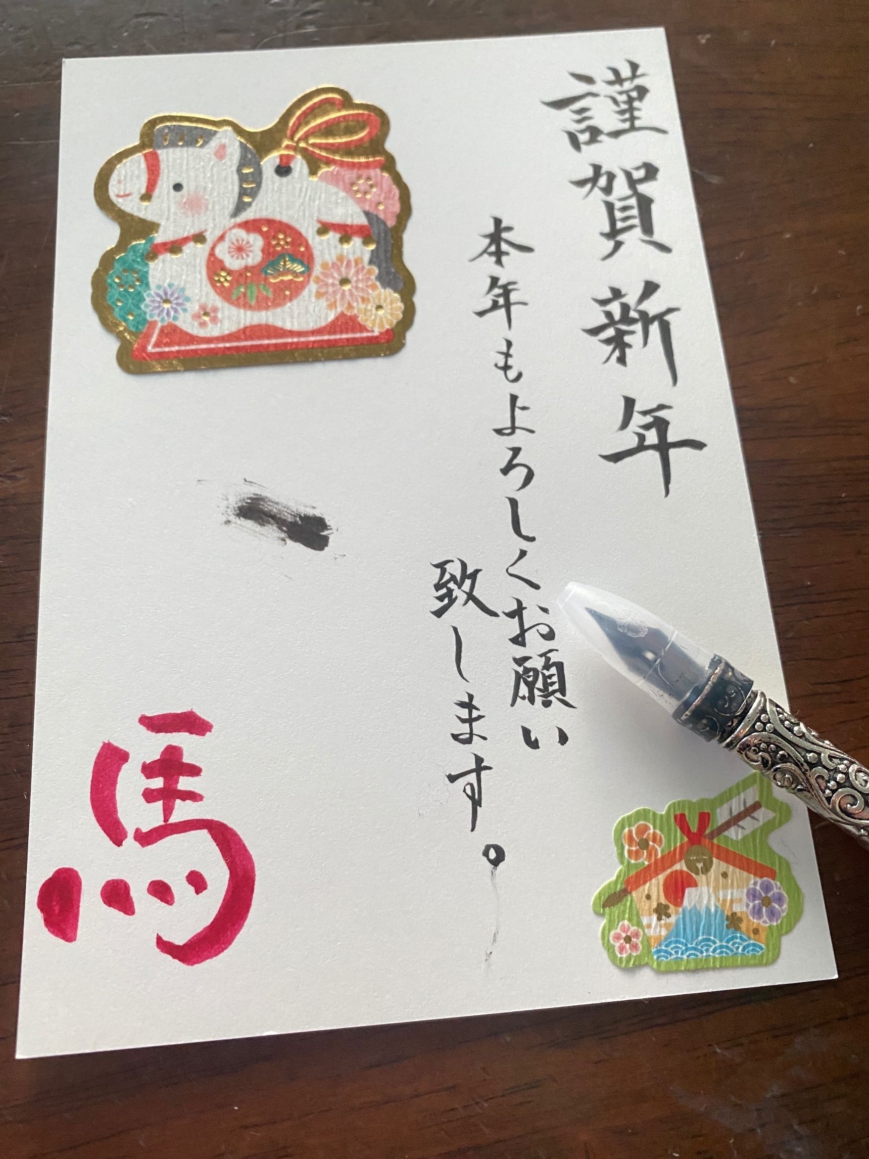 インクがボタッとしてしまったら、干支シールを貼ってなかったことにしますよ(笑)。