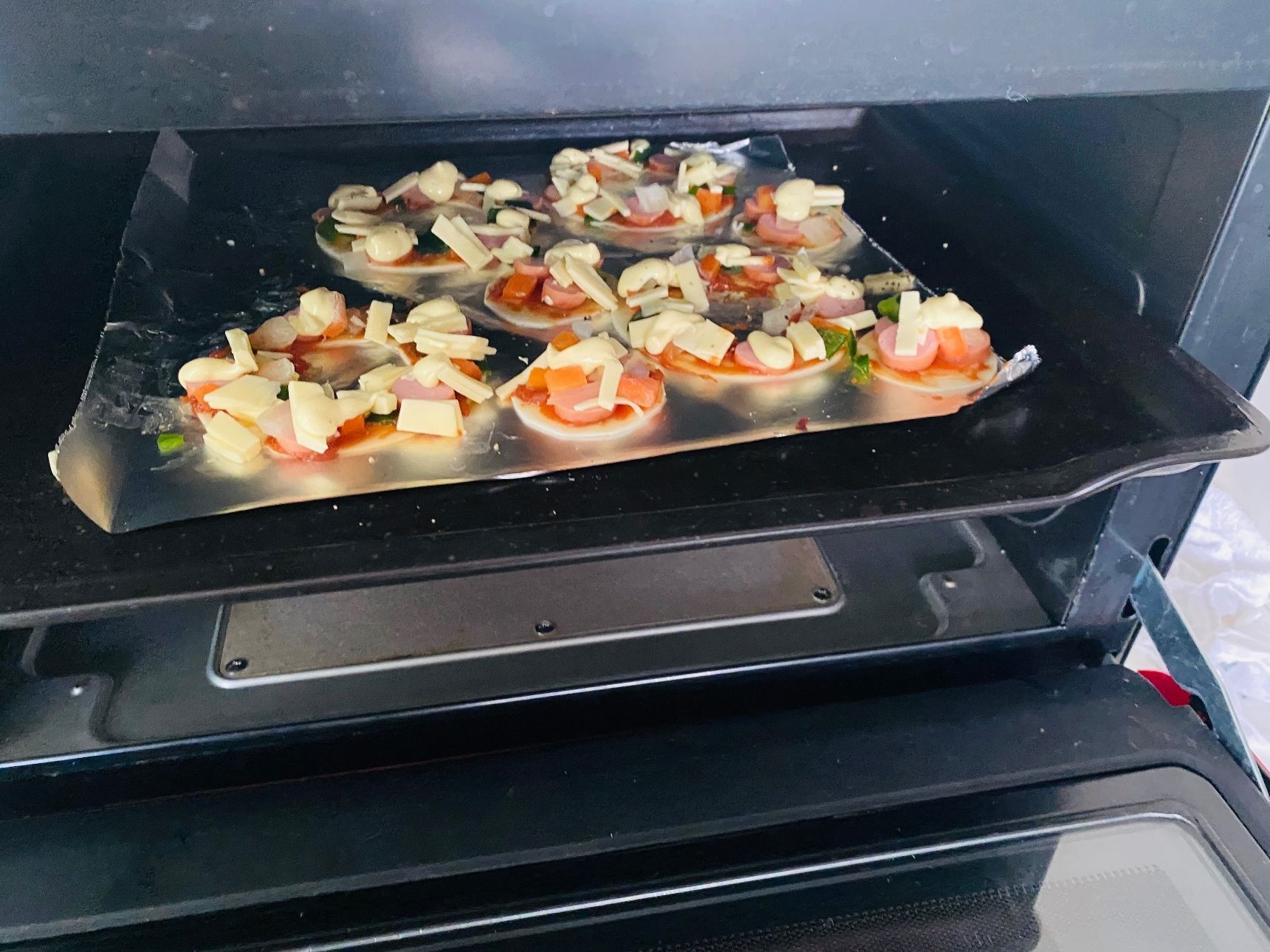 ⑥オーブンを180度に温め、15分ぐらいカリッと焼き上げます。焼き上がり時間は調整してください。