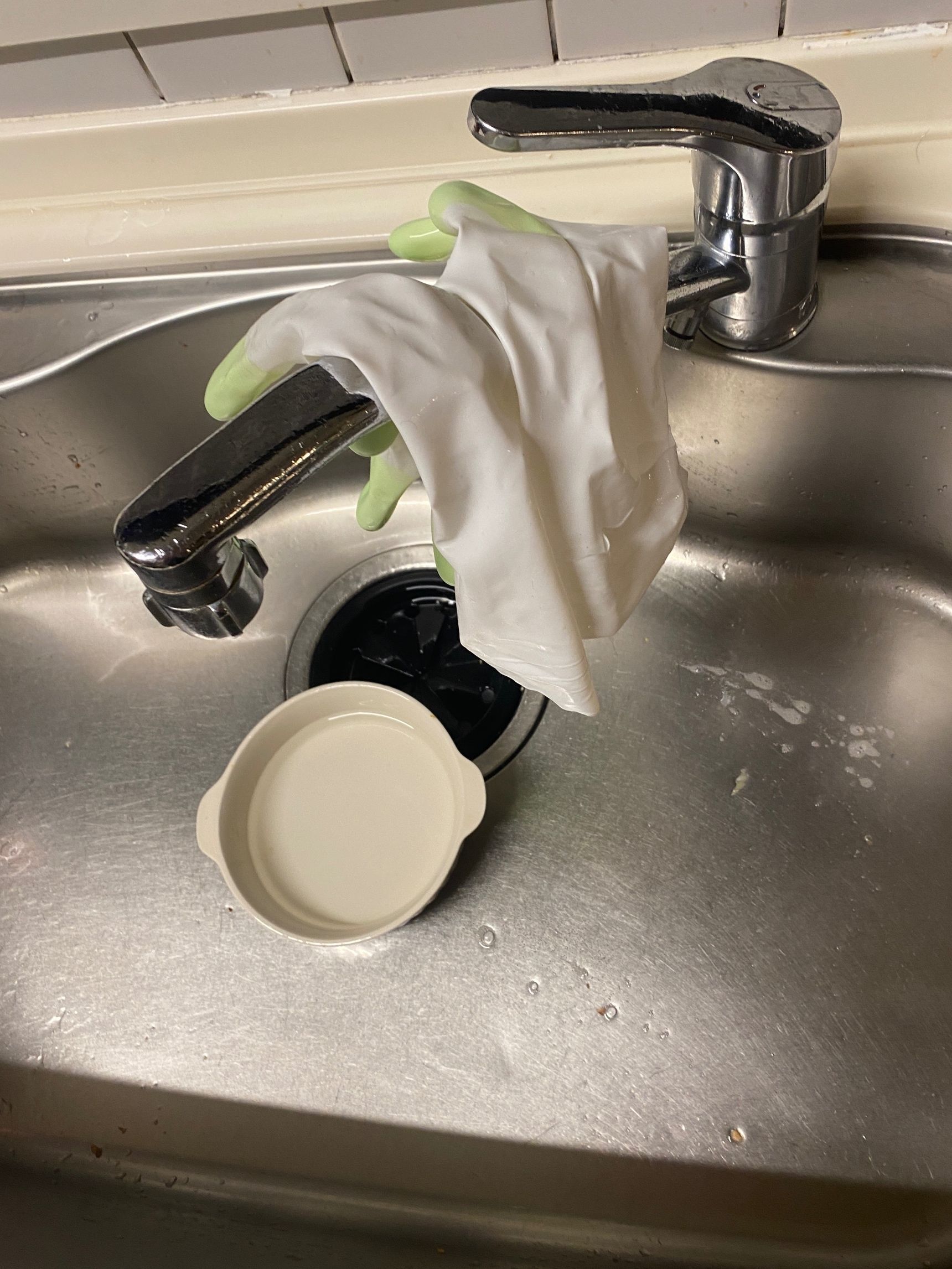 そこで、食器を洗う時は、直接手に水がかからないようにゴム手袋を使うようにしています。
