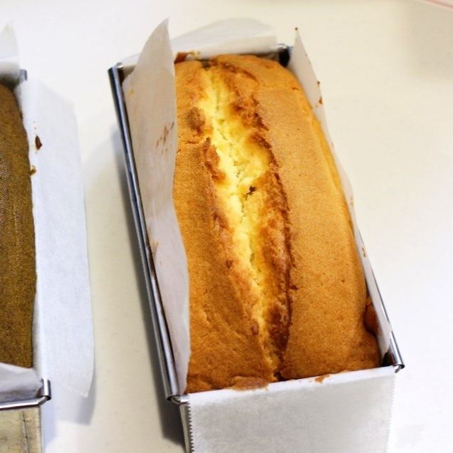 底にトントンとうちつけて空気をぬき、170℃予熱したオーブンで40分焼く。10分程焼いたら、ナイフで切り目を縦に入れる。