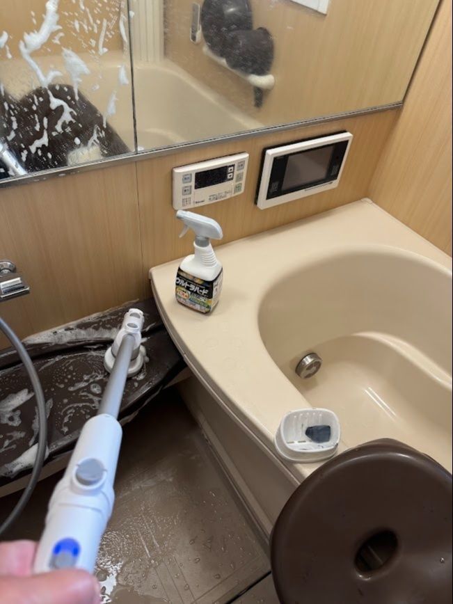 腰を屈めず負担を軽減して浴槽から天井までのお掃除を軽々こなすことができます。