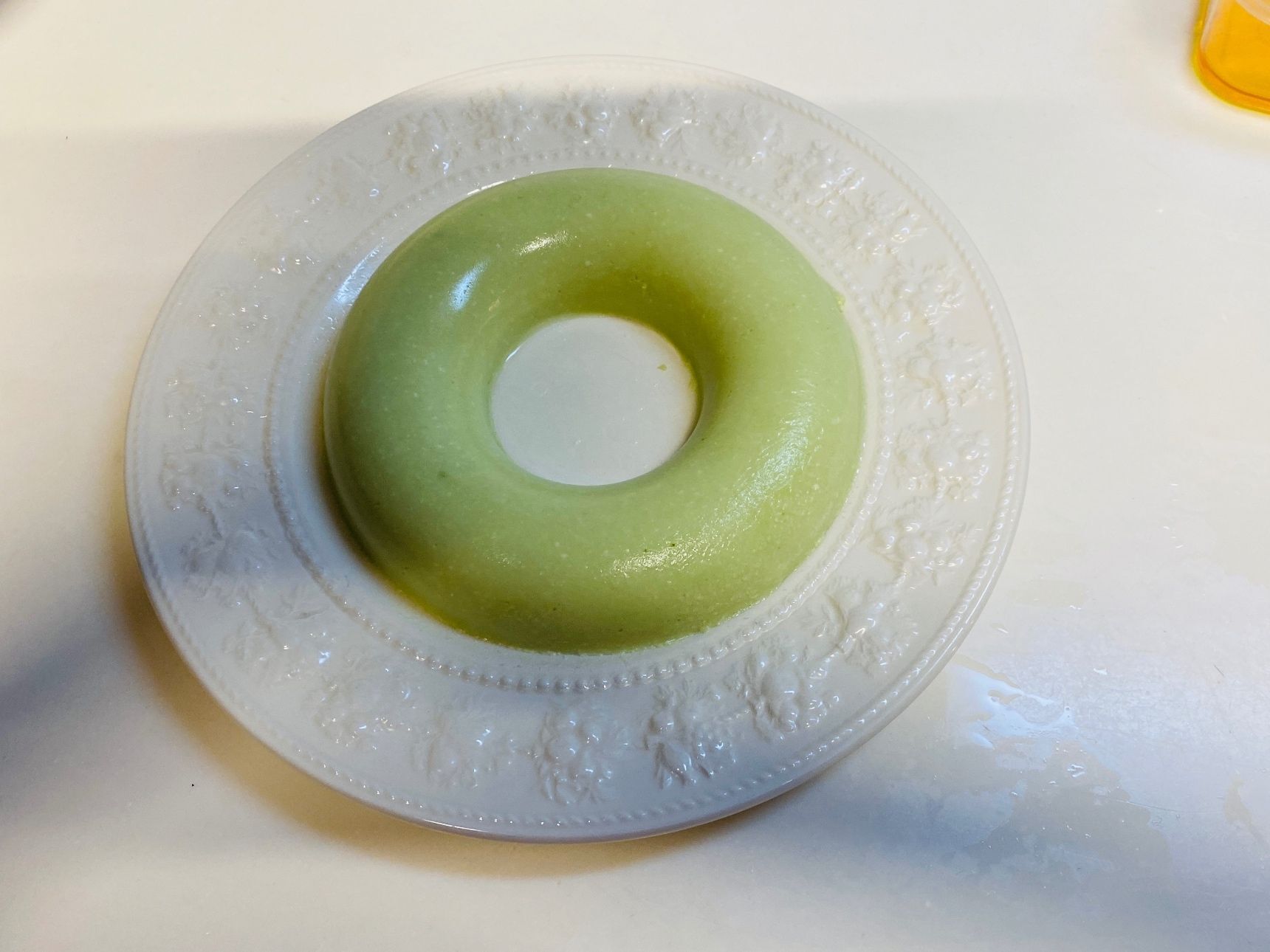 ⑦固まったら、容器ごとさっと湯煎にかけ、星型クッキー型で型抜きします。
