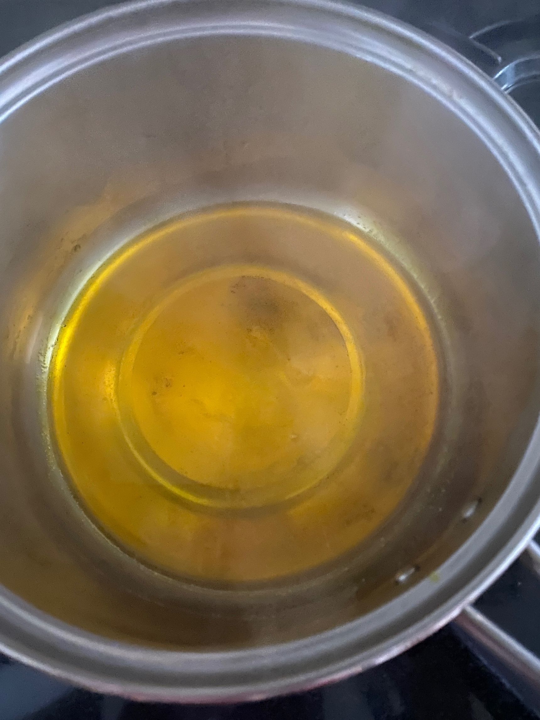 ⑥一晩水に浸しておいたグミを鍋に入れ、水100cc、ゼラチン2gを入れ混ぜながら弱火にかけます。
