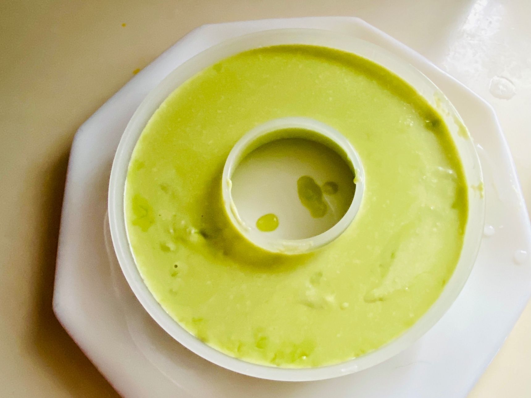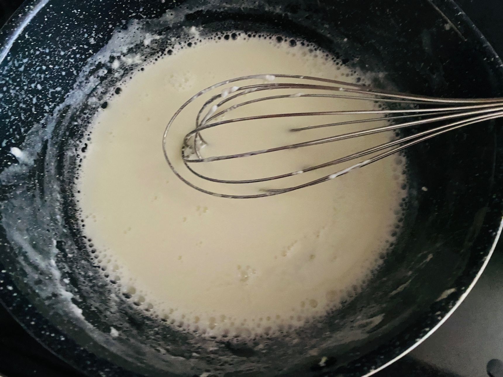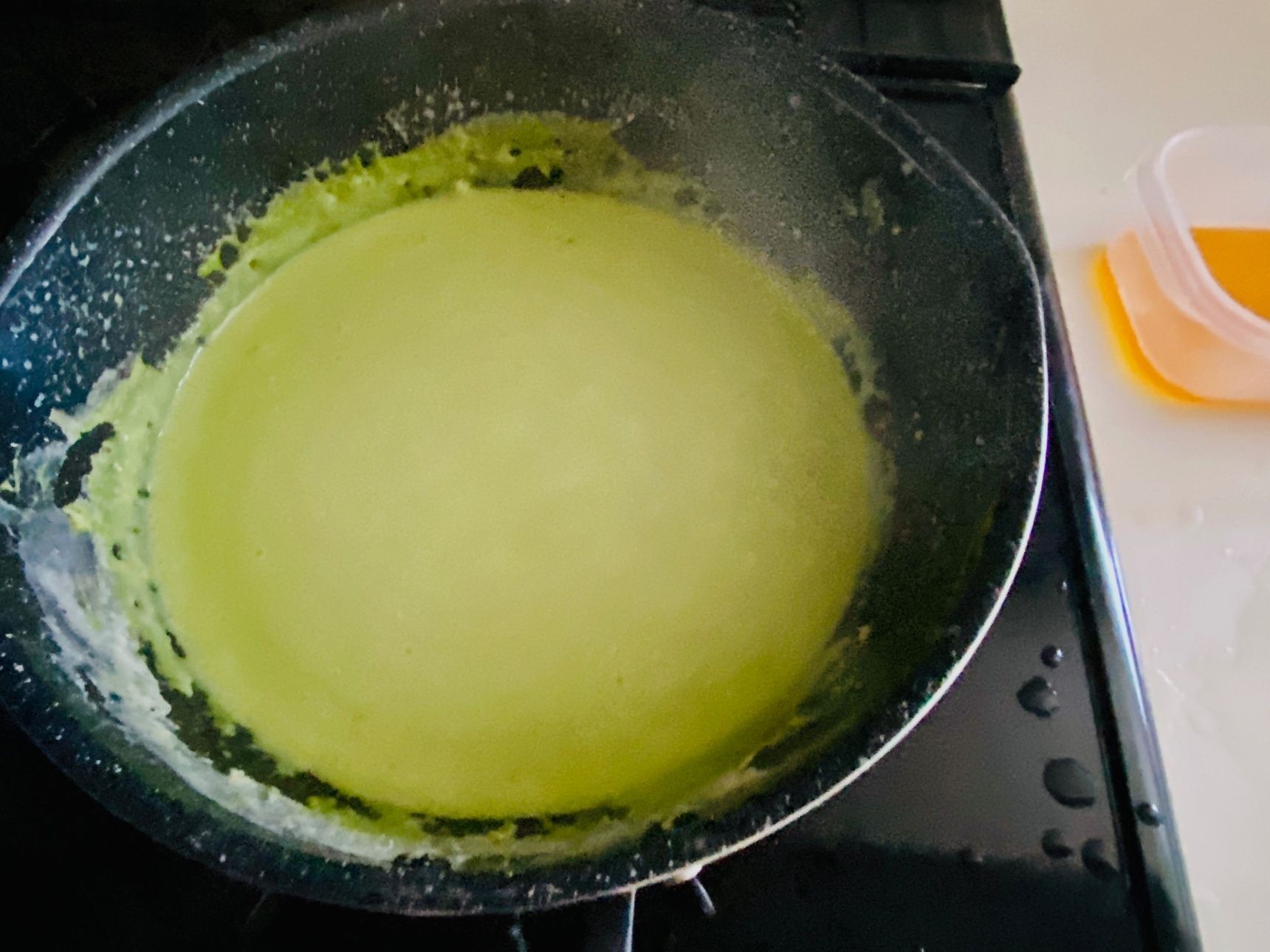 ゼラチンが溶けたら、クリームチーズを入れてよく混ぜます。
