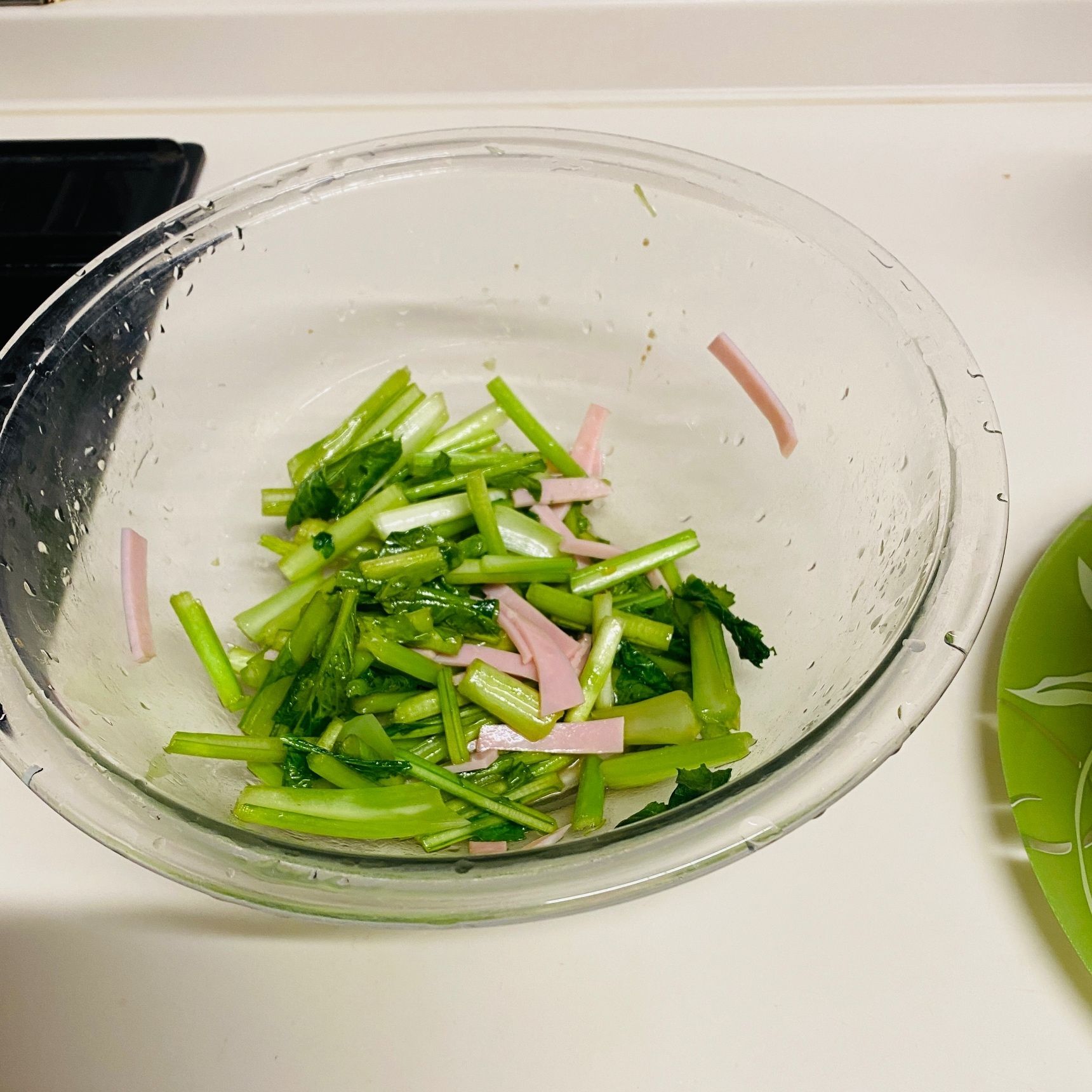 ハムのせん切りを加え、塩胡椒で味を整えます。