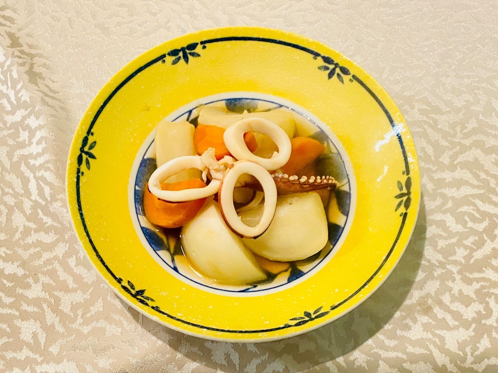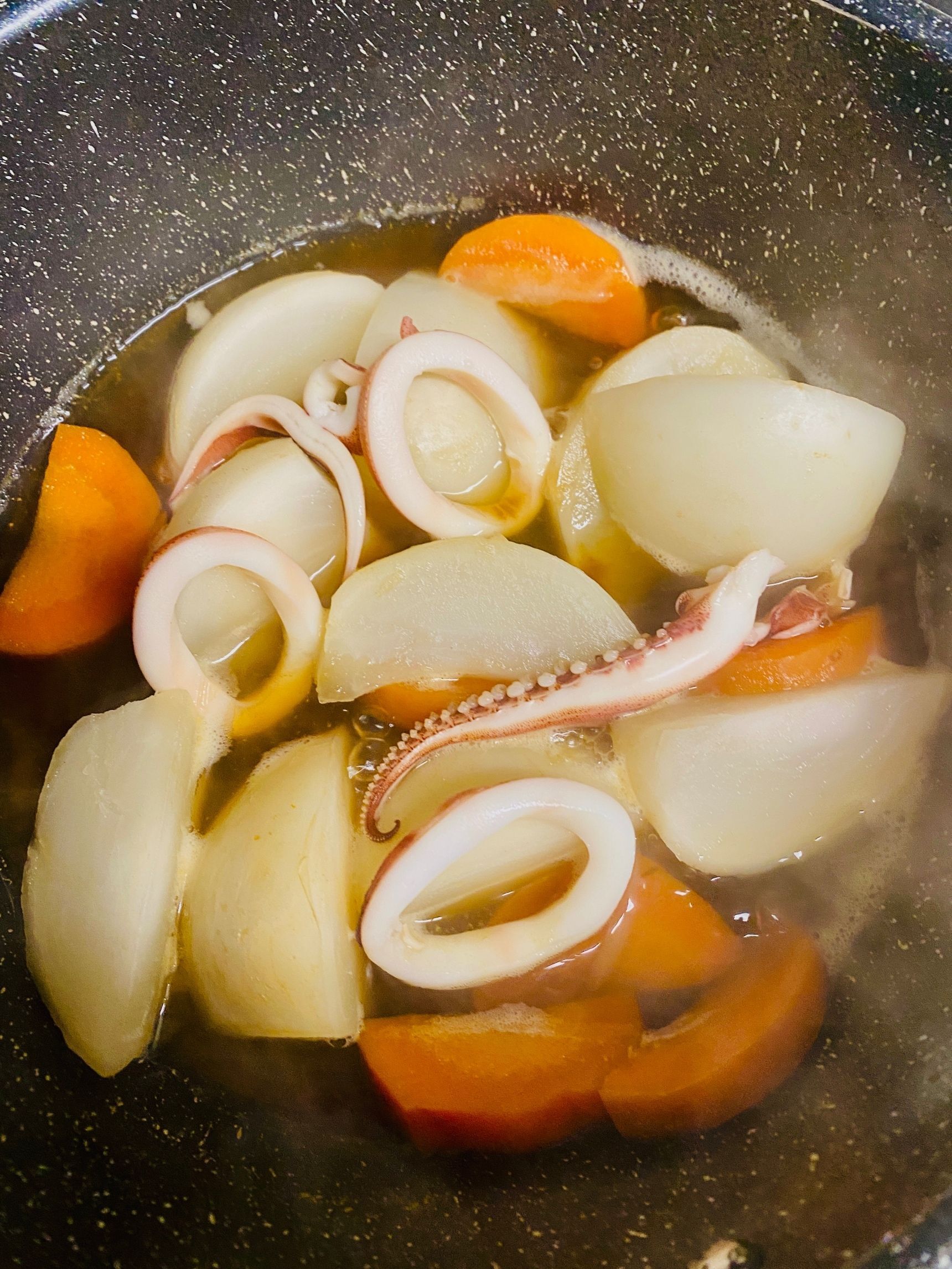 味が染みてきたら、イカを入れ、さっと煮ます。