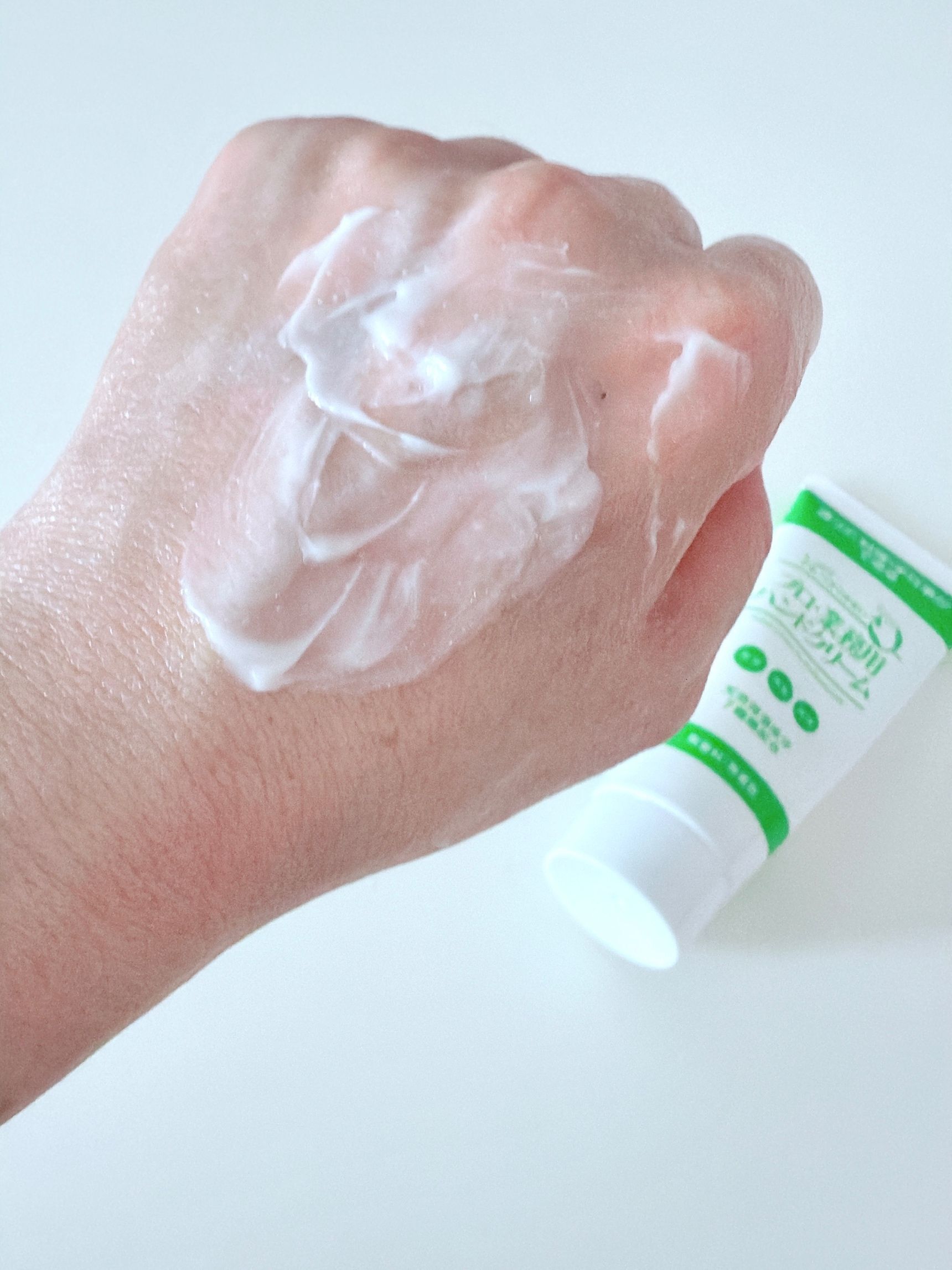 塗り広げても、やはり厚めにとどまる感じ。クリームパックのようなしっかりしたクリームをイメージしてもらえると近いかも。