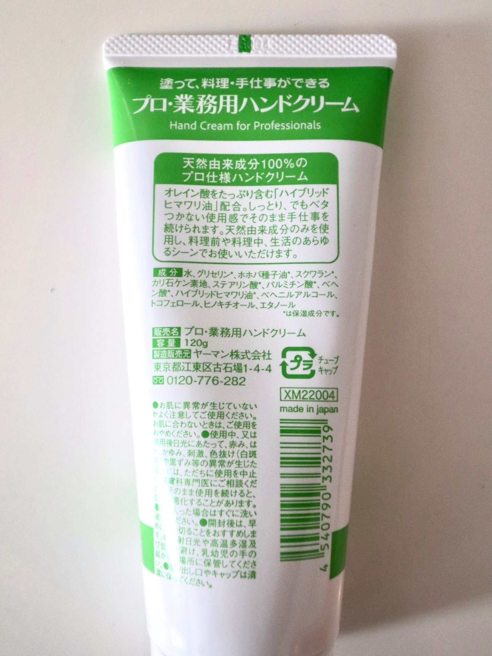 その素晴らしいハンドクリームは「ヤーマン株式会社 プロ・業務用ハンドクリーム」。通常は、「ビジュよし」なアイテムを好む傾向があるので、きっと手に取らなかったであろうこちらのクリーム。あまりの口コミの良さと「プロ・業務用」という言葉にひかれて購入したのは2年ほど前。
