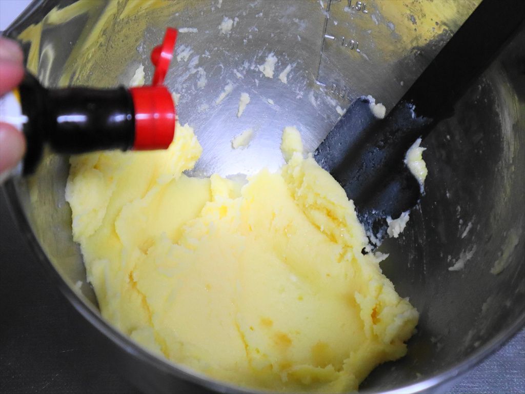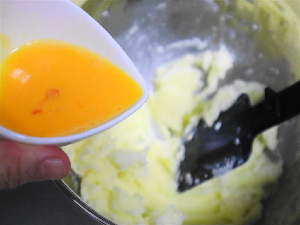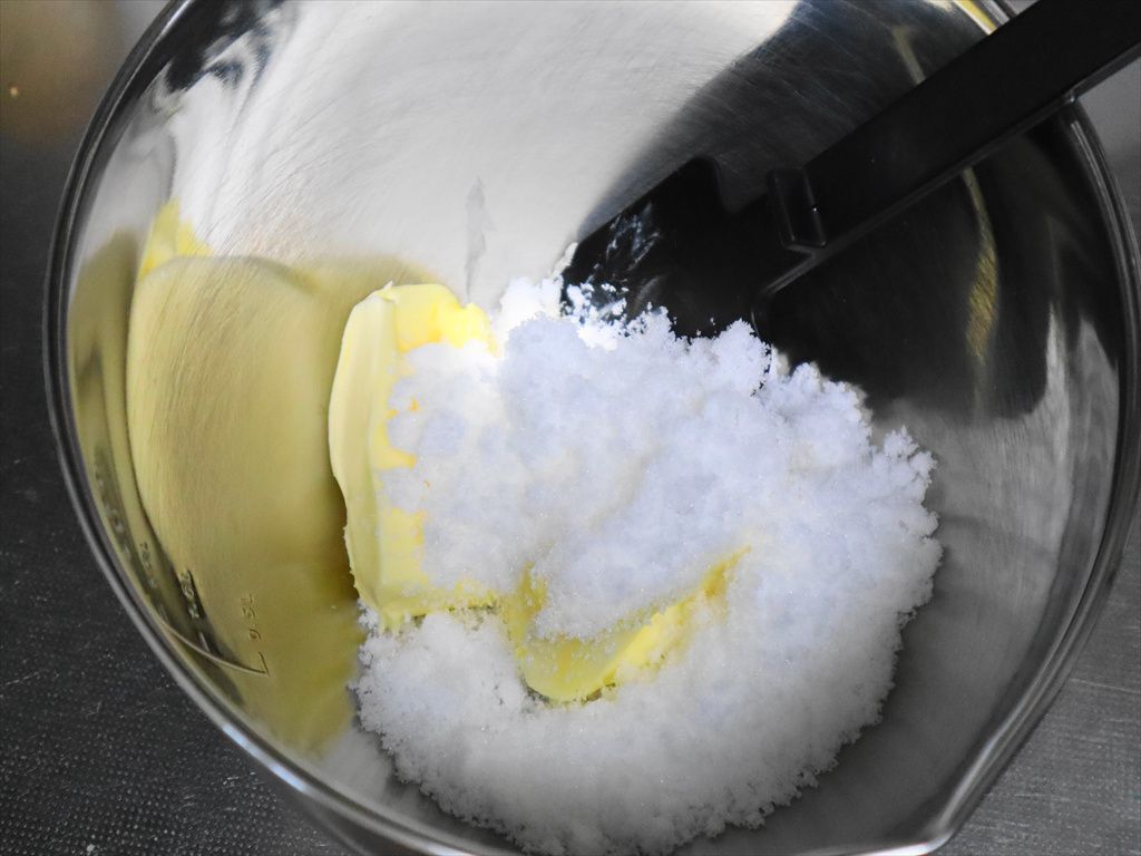 バターを室温に戻して柔らかくしてから砂糖を加え擦り混ぜます。