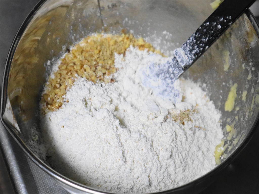 ザクザククッキーの食感と香ばしい味の決め手は胡桃。クッキー型で抜きやすいように、まずは細かく刻んでいきます。少し粒感があるくらいがザクザクして美味しいです。