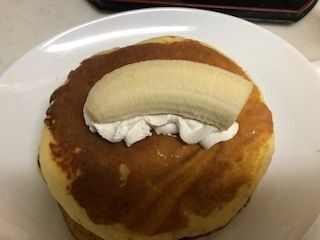 薄いホットケーキをパタンと折り曲げてできあがりです。ラップで巻いて少し冷蔵庫で冷やしてから食べると、全体的に生クリームがなじんでしっとりとするので、より美味しく食べる事ができます。