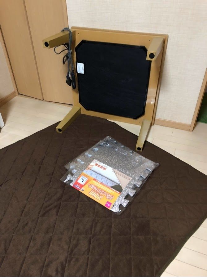 カーペットやこたつ敷布団の下にジョイントマットを敷くと床からの冷気を遮断します。また、こたつ内の保温効果を発揮します。こたつがある程度あたたまったらスイッチを切っても暖かさが持続します。厚みがあってクッション性もあって座り心地も良くなります。薄いアルミシートと違ってズレないし丸まらないのでおすすめです。