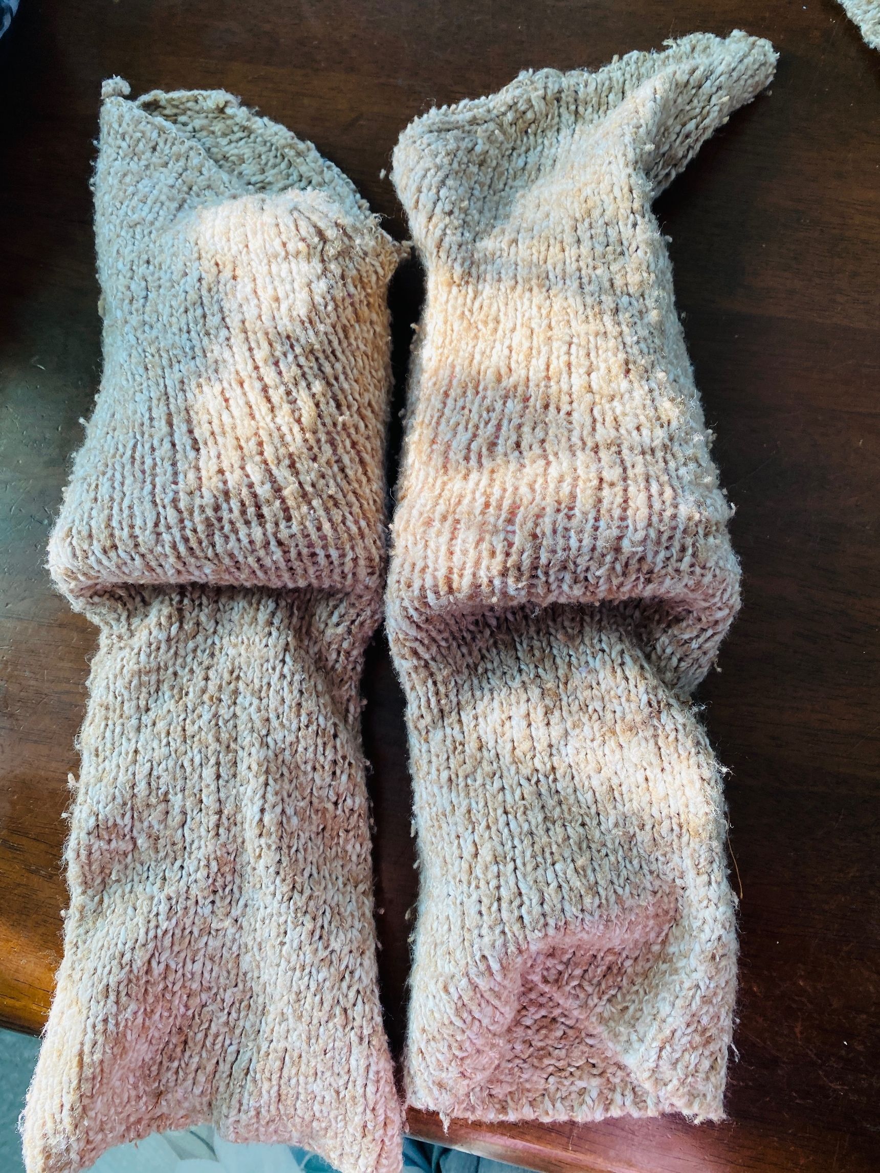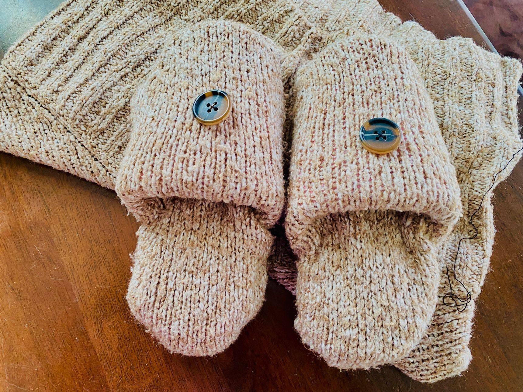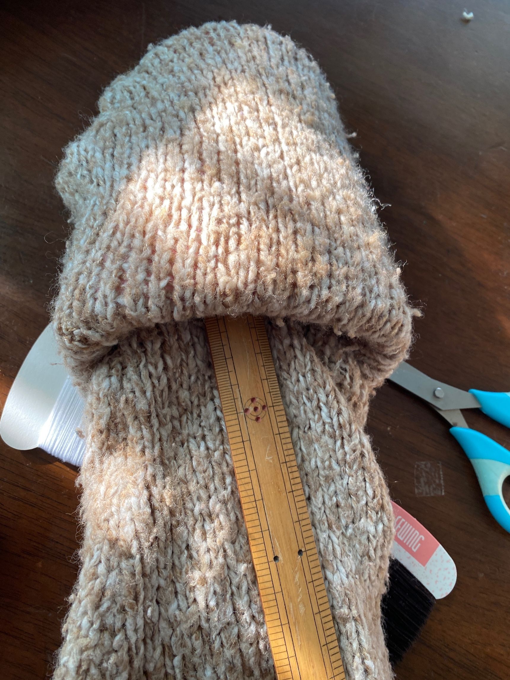 つま先をスリッパの山型に合わせて切って内側を縫ってひっくり返します。