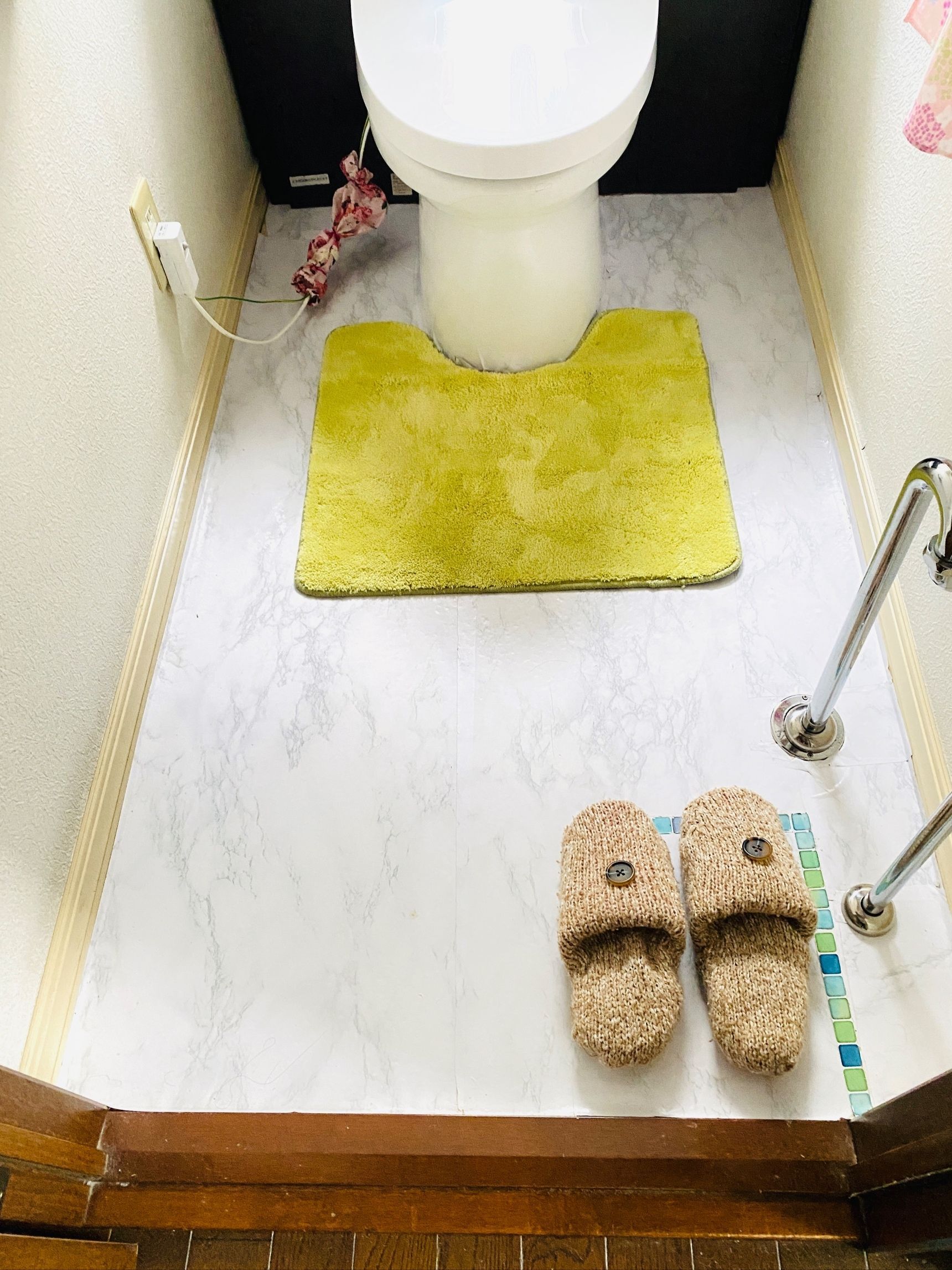 スリッパの奥側に切り込みを入れると、貼りやすいです。