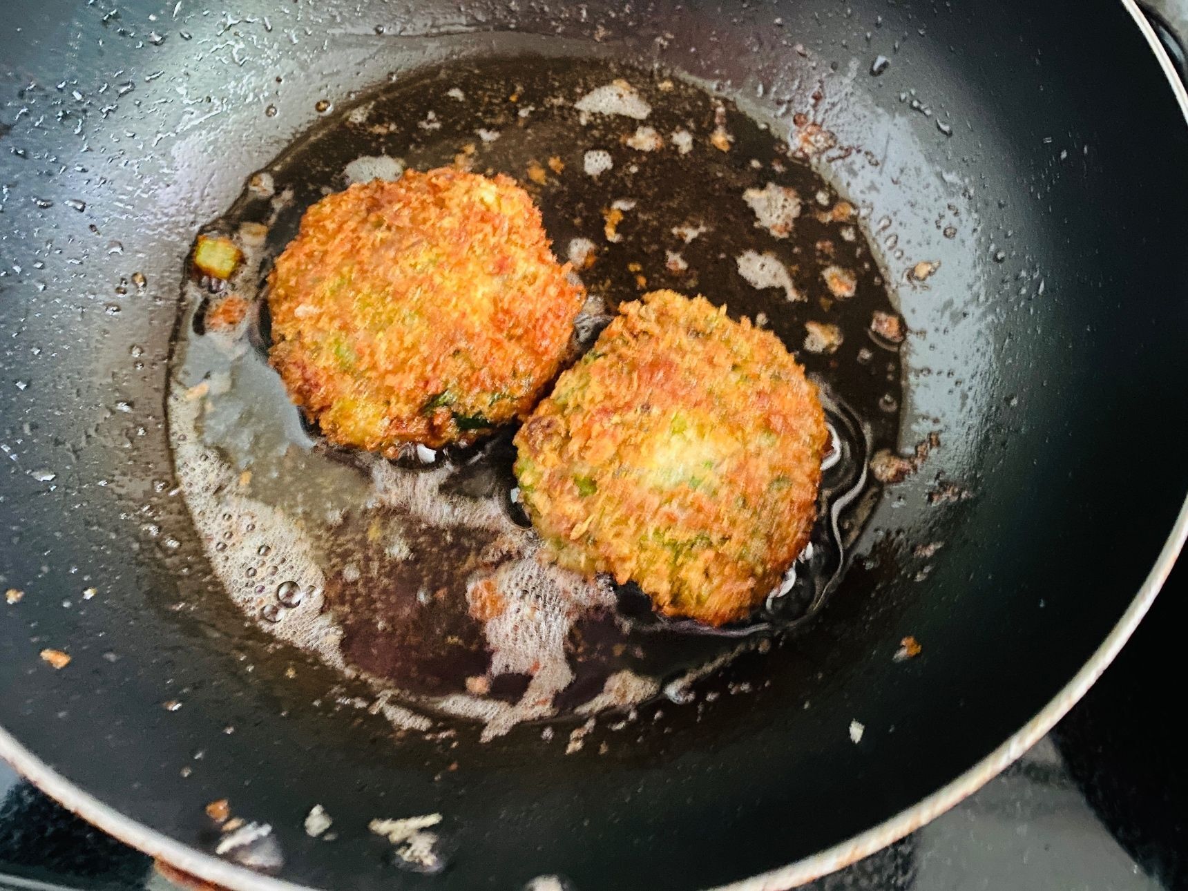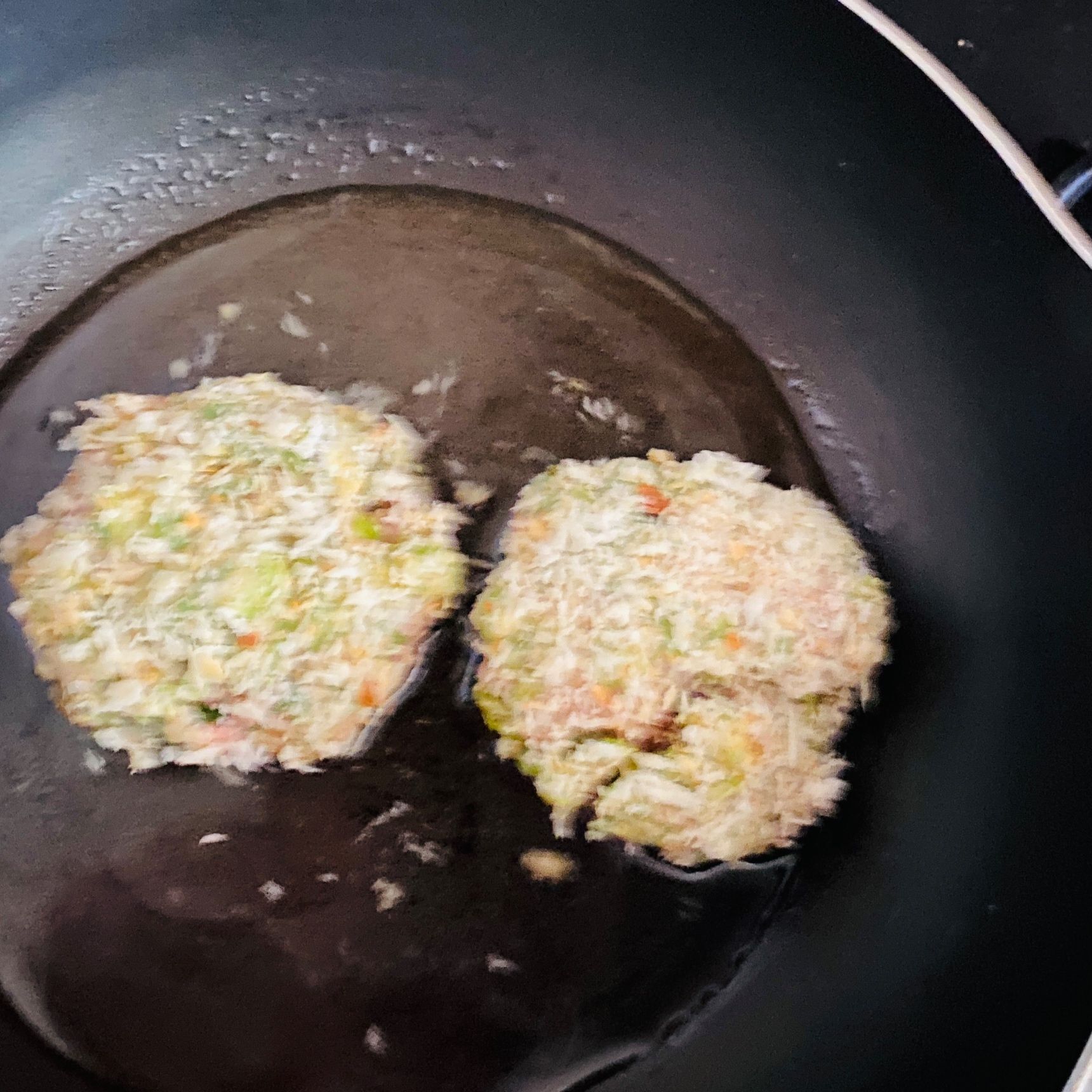 ⑤こんがりきつめ色になったら、ひっくり返して揚げ焼きします。