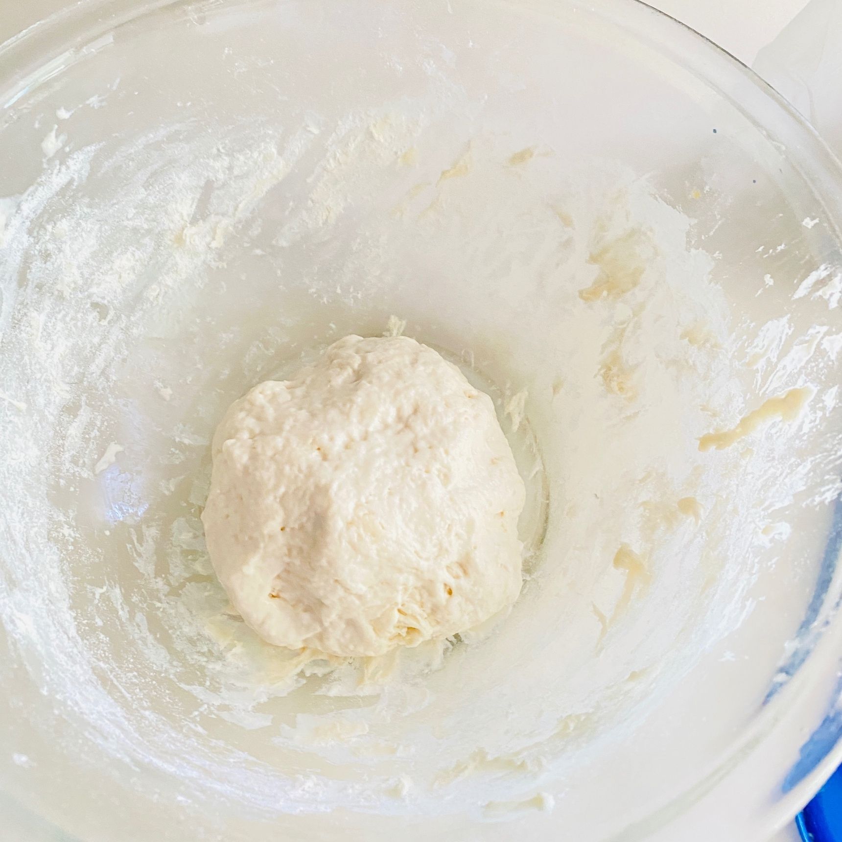 底がべたつかなくなるまでよく捏ねてひとまとめにします。