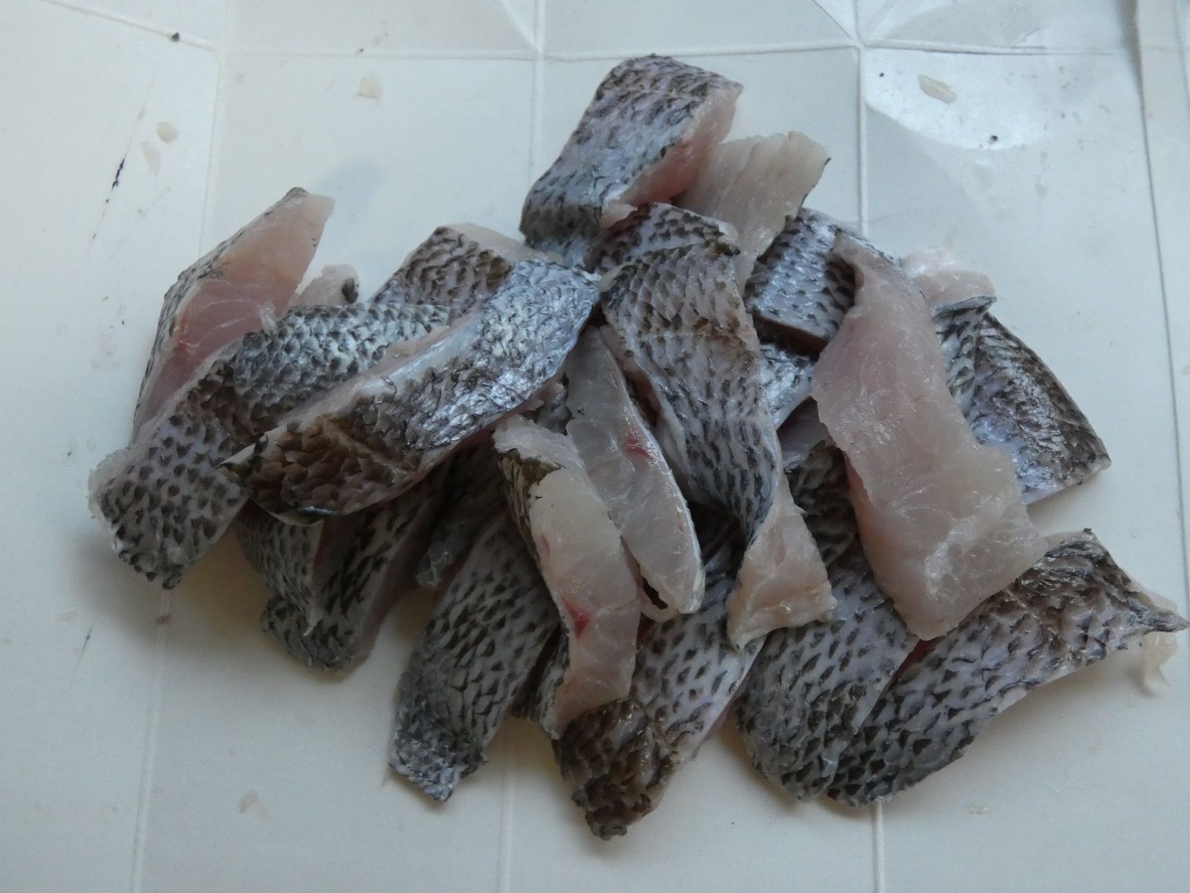 黒ムツは鱗を取って3枚におろし、食べやすい大きさに切ります。