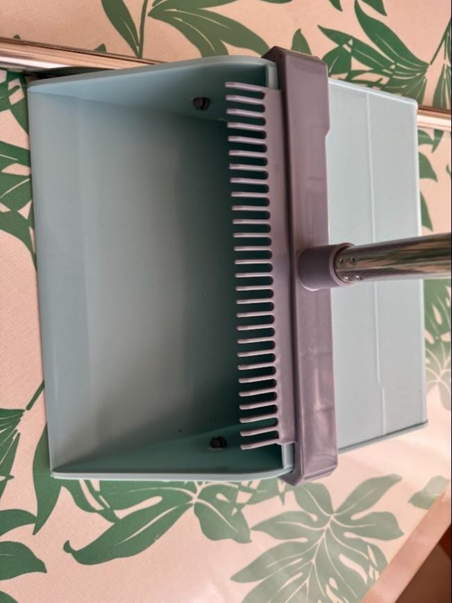 ちりとりが折りたためて省スペースなので、使わないときも収納の場所を取りません。おしゃれな「くすみペパーミントグリーン」で色も気に入っています。