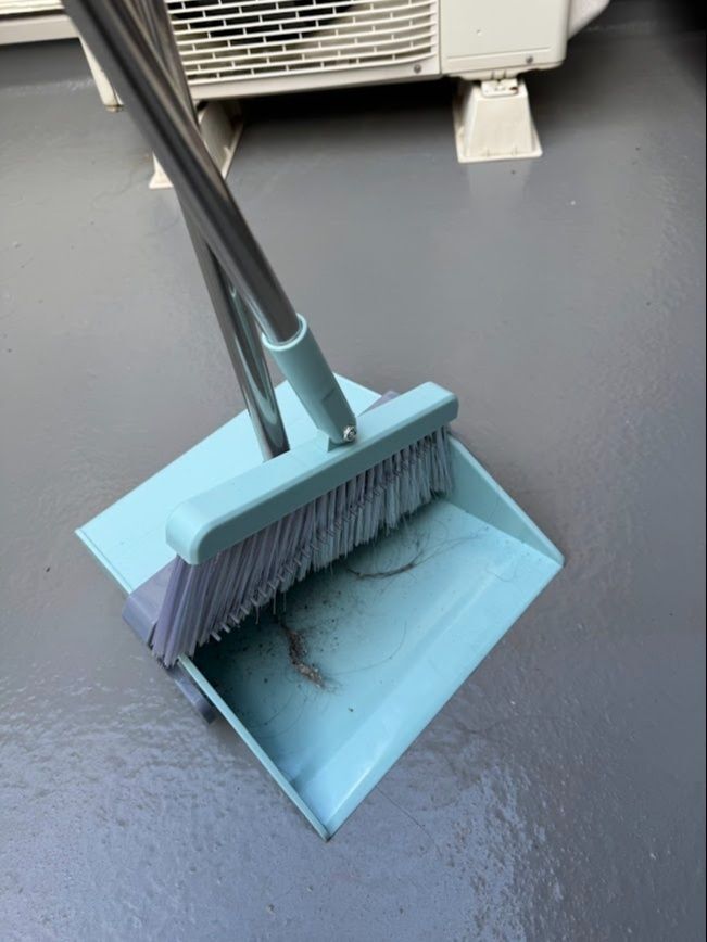 ベランダで使っています。風で飛んできたホコリや砂はもちろん、洗濯物から落ちた糸くずや髪の毛などほうきに付いたゴミを簡単に落とせます。