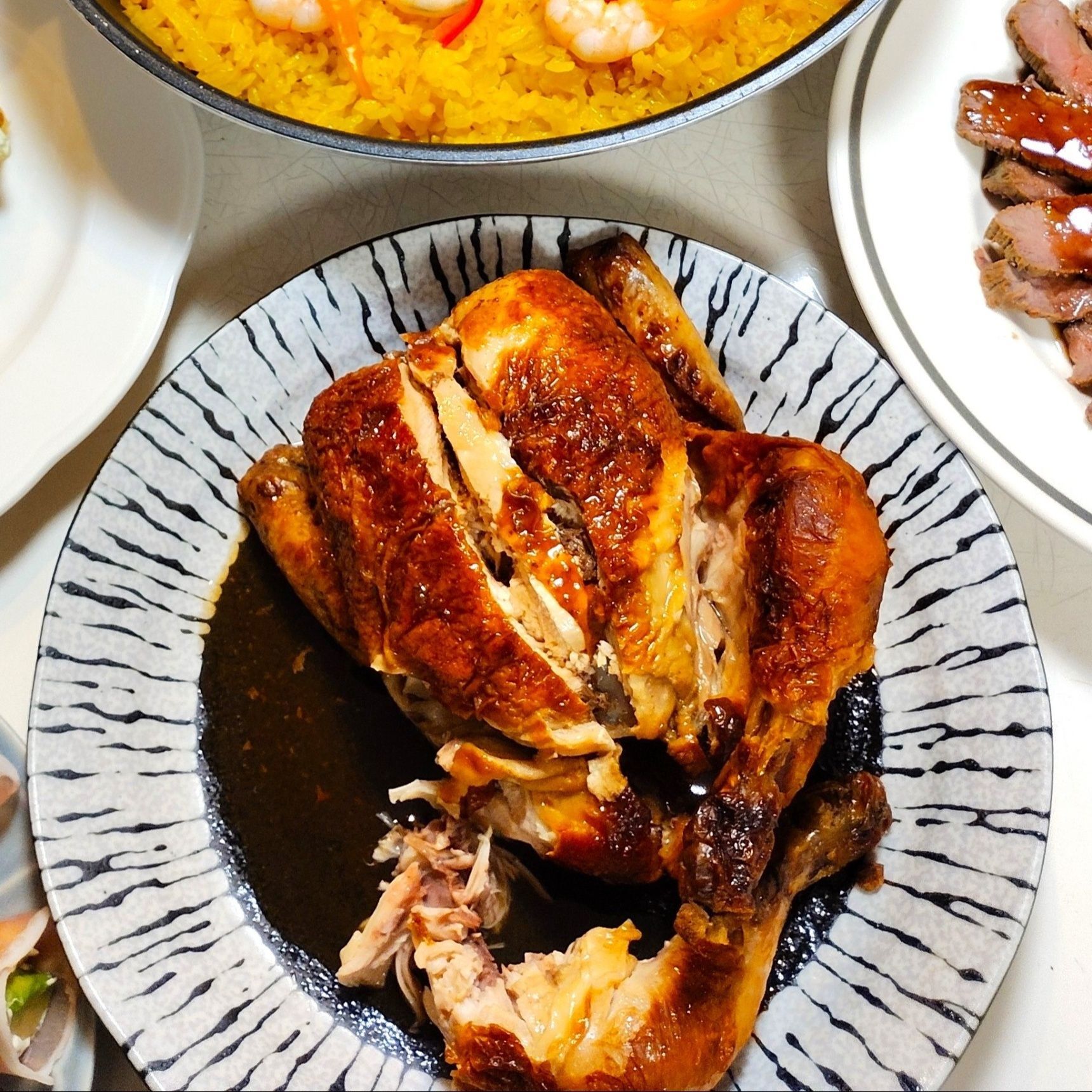 見た目が豪華!丸鶏のローストチキンはやっぱり映えますね(^^)
