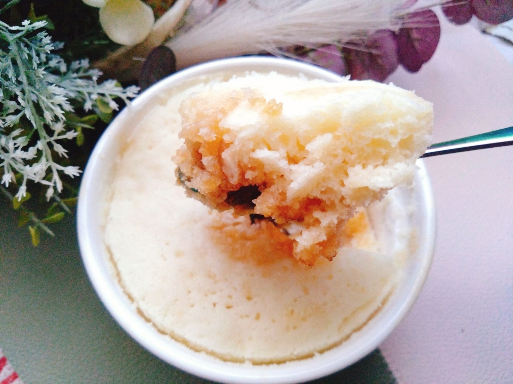 600Wのレンジで1分半加熱して取り出す。串を刺して生地が付いてこなければ完成。