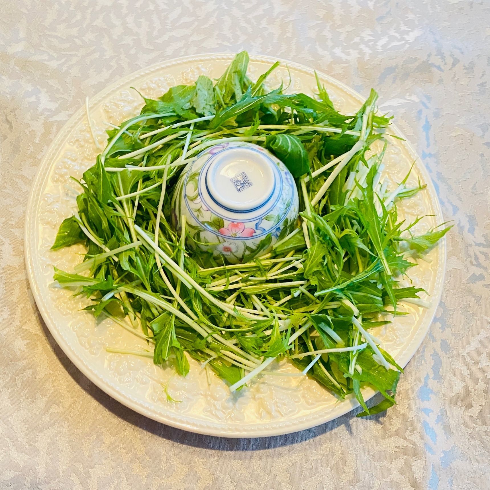 水菜を写真のように盛り付けます。