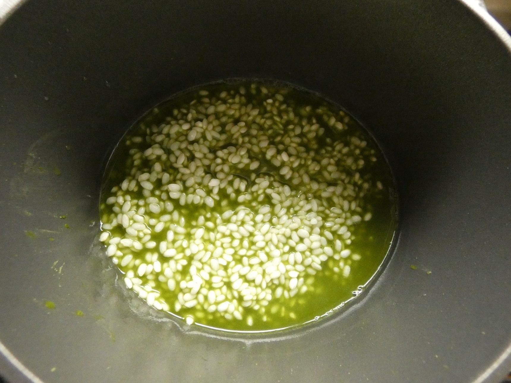 もち米と抹茶パウダーを餅つき機にセットし、蒸しあがったらそのままつきます。