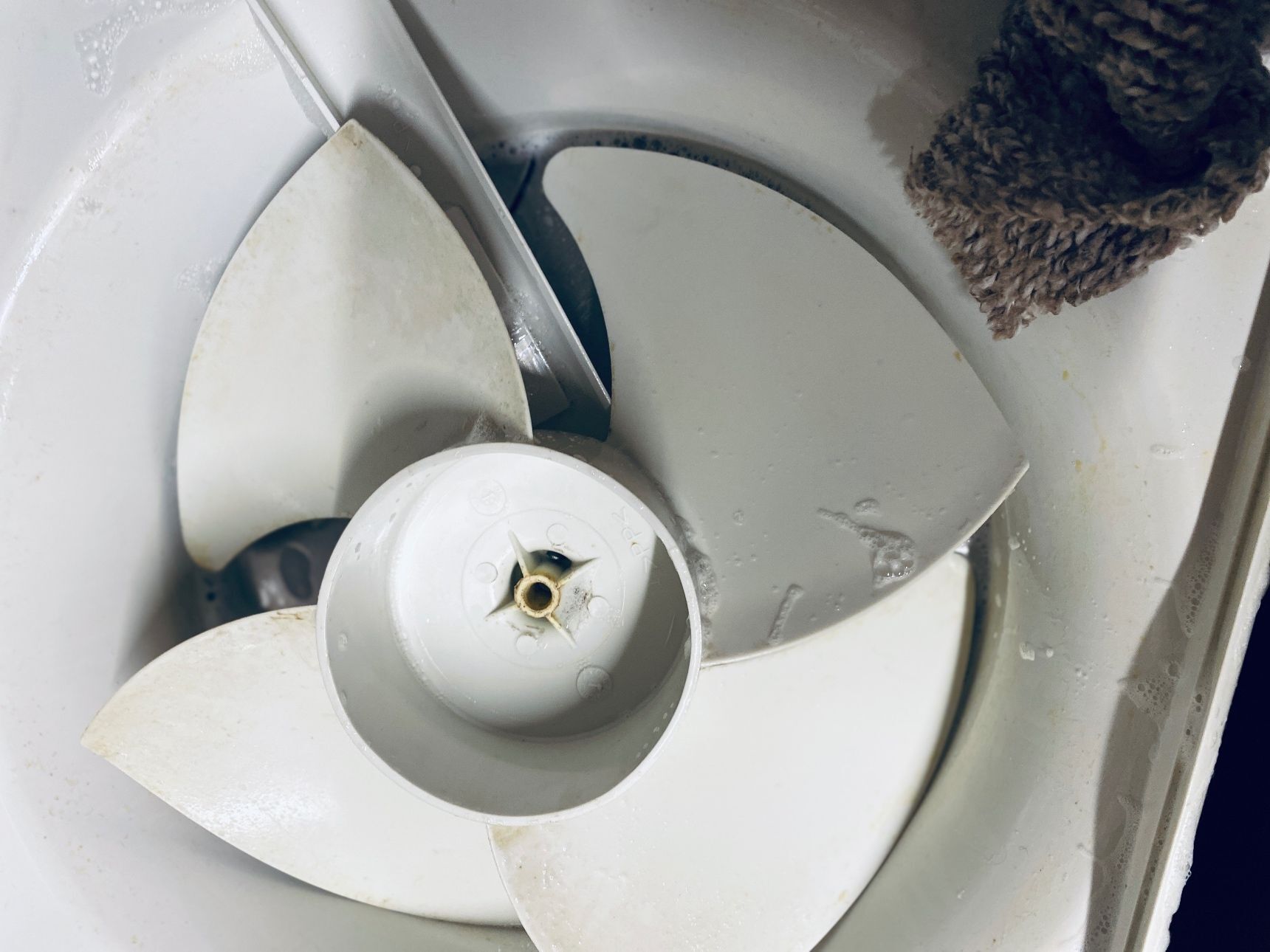 換気扇の内側も古セーターたわしで力を入れずに擦って、水で洗い流しました。