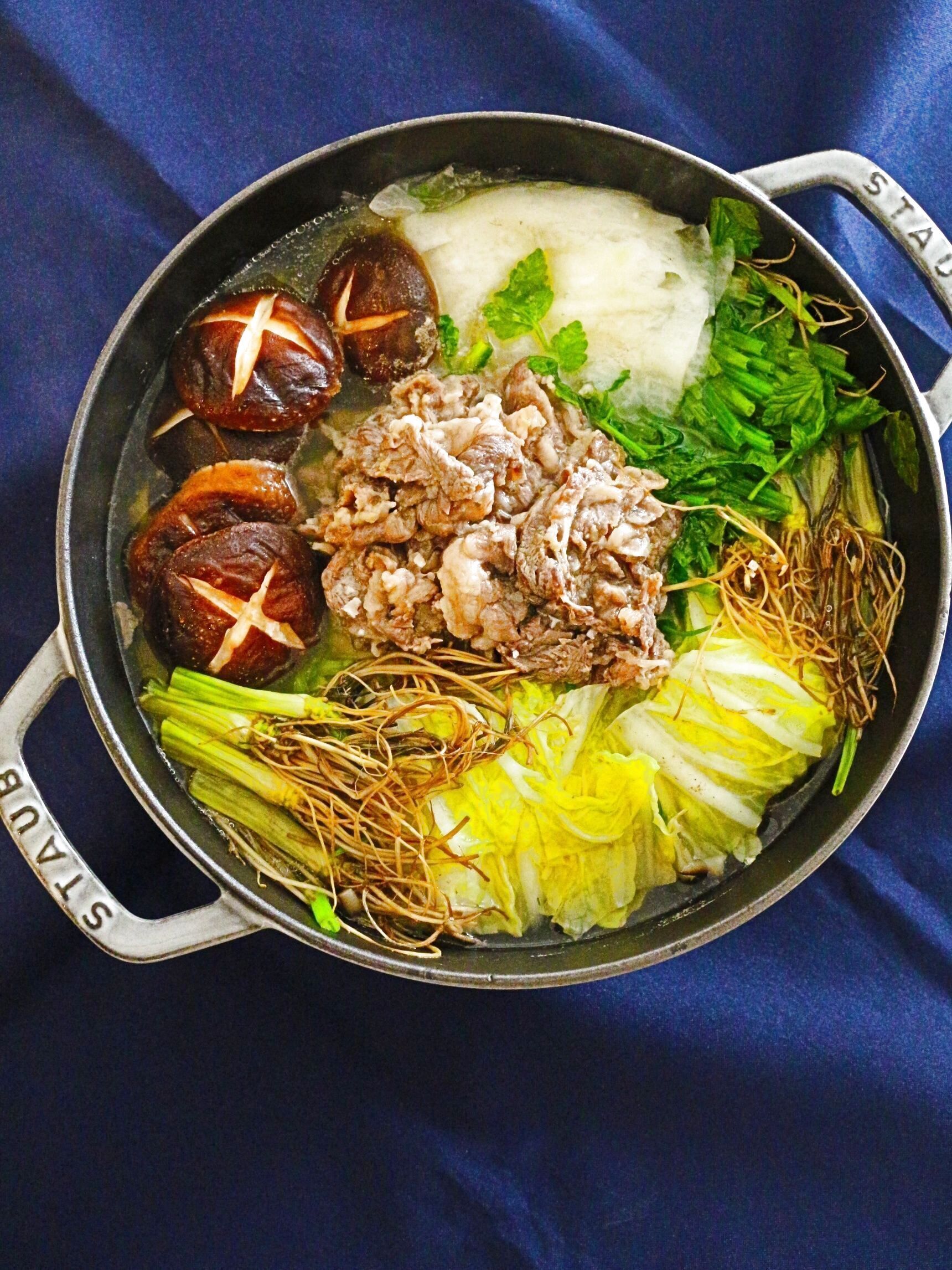 ②お鍋に①の材料を入れ、とぎ汁を加えて火にかける。