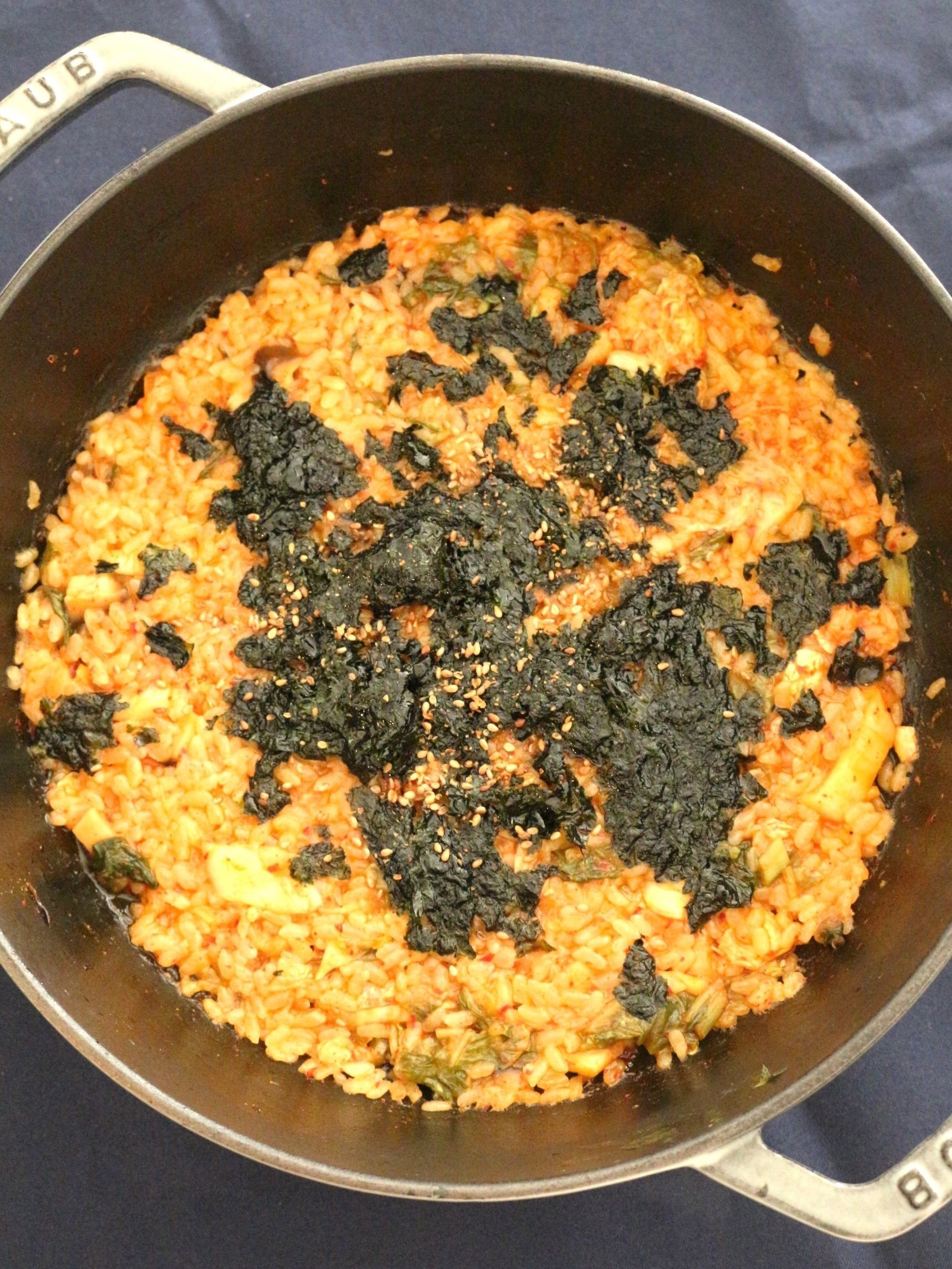 〆にはご飯とキムチ、韓国海苔を入れて炒めました。