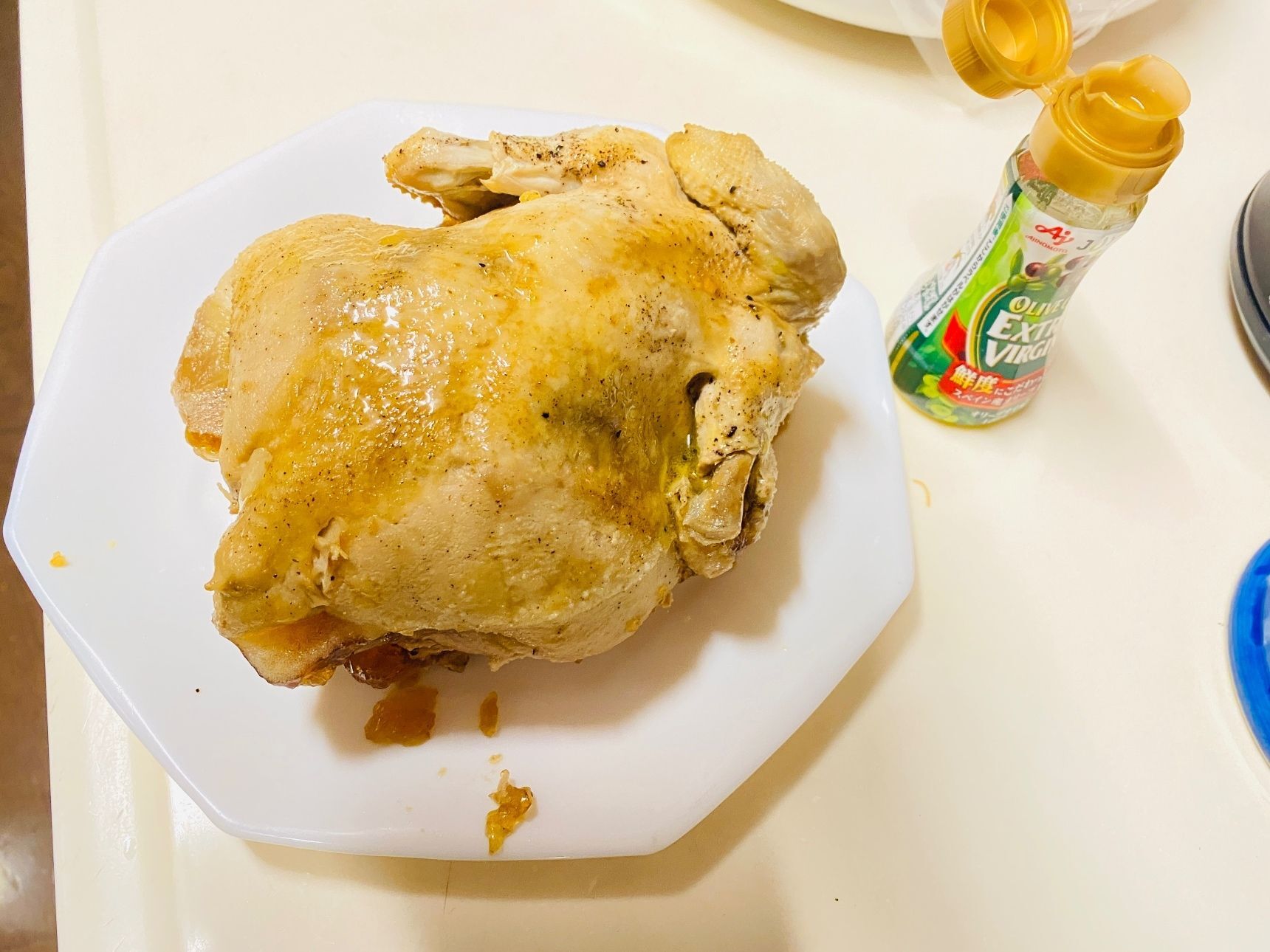スタッフドチキンにオリーブオイル(他の油でもOK)を、刷毛で塗ります。