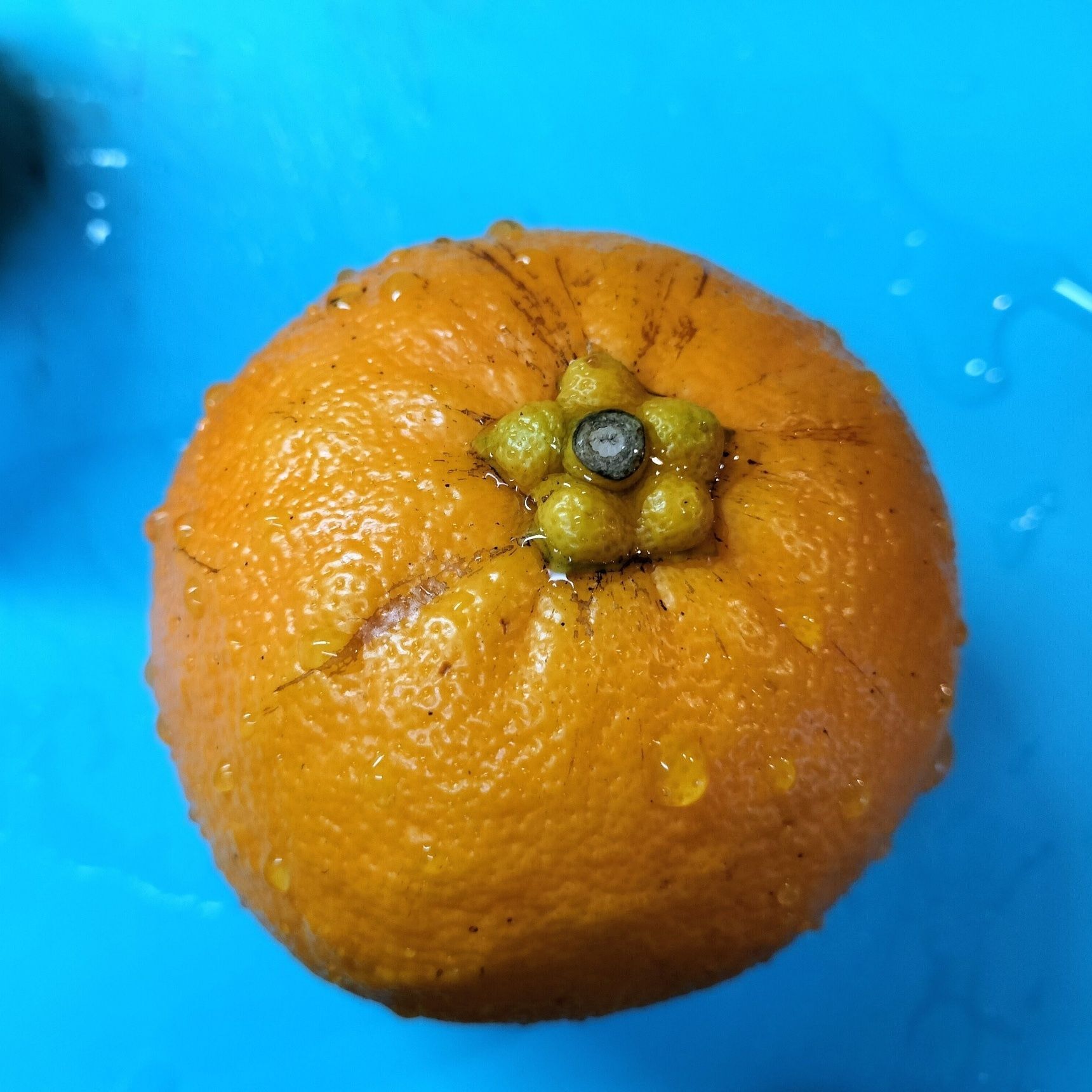 各自、紫カリフラワーに、橙を絞りかけ、手順3の塩胡椒オイルをかけて、いただきまーす!
