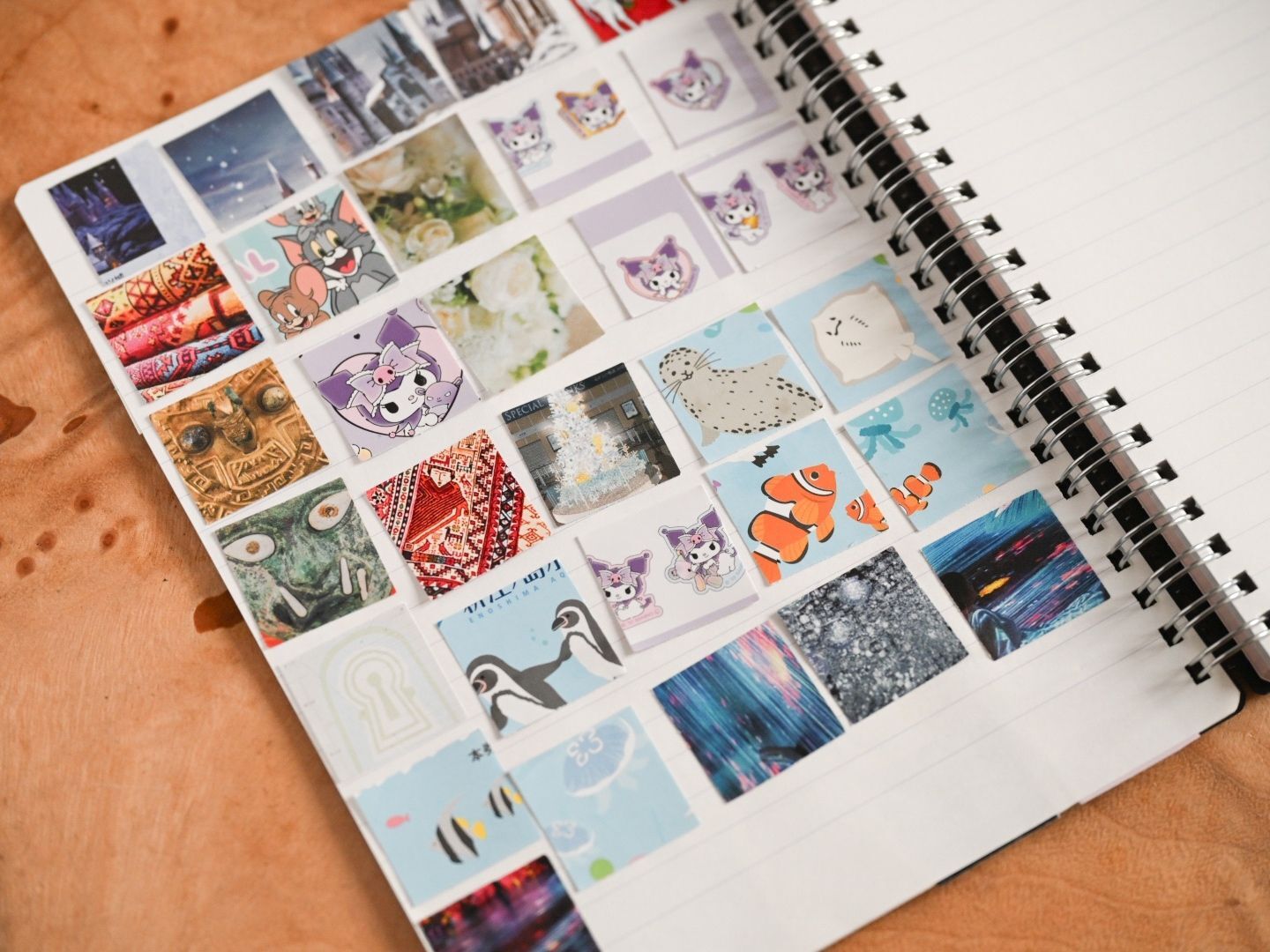 チラシやパッケージの気に入ったところを四角に切り取り、スクラップしていくだけ。 お気に入りの絵柄が詰まったノートは見るだけでワクワクしてきますよ。 ※画像は小学生の娘のスクラップです。